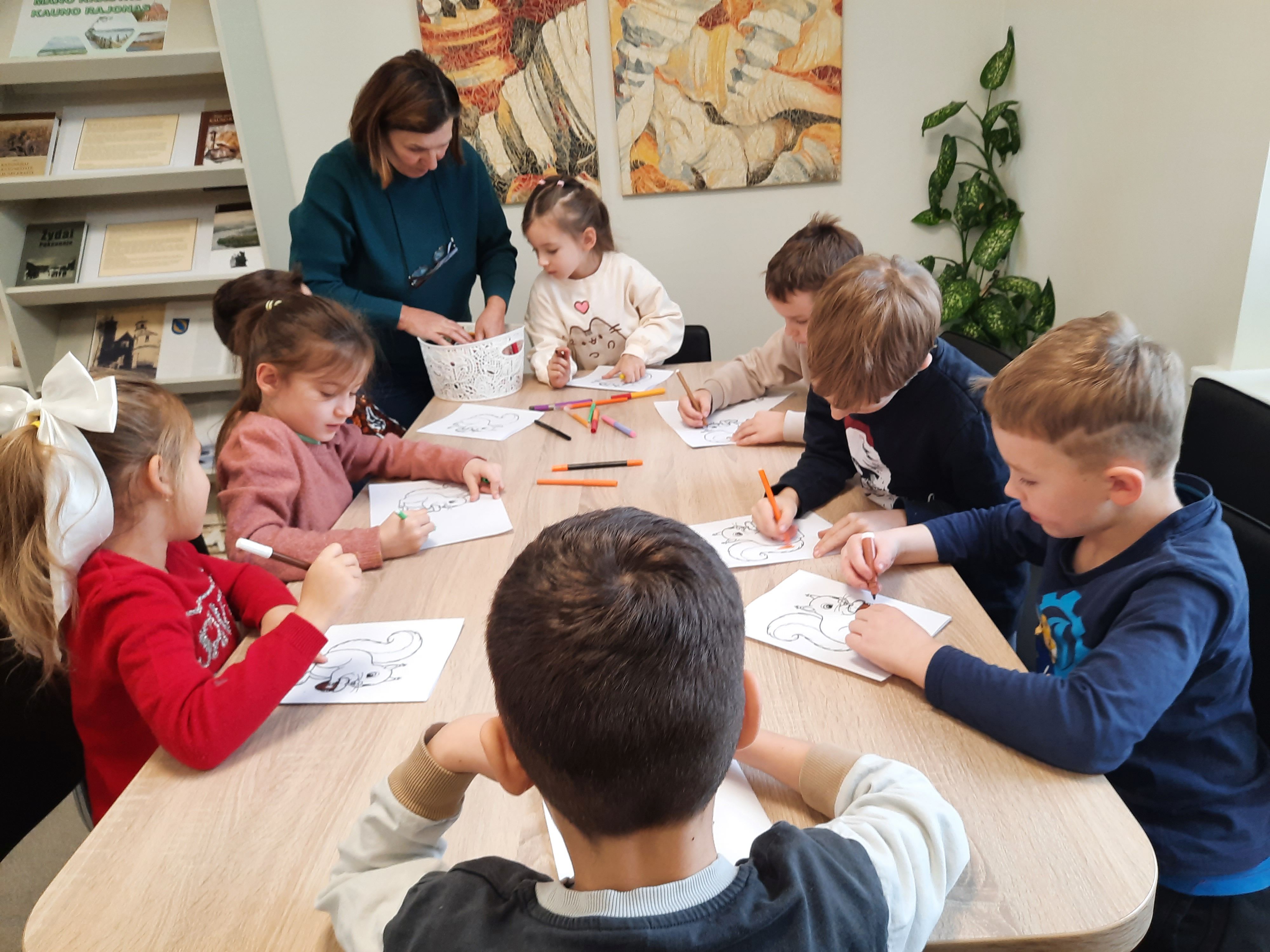 Lapkričio 27 d. Ramučių bibliotekoje svečiavosi Karmėlavos Balio Buračo gimnazijos Ramučių skyriaus priešmokyklinės klasės vaikučiai su mokytoja K. Klinkevičiene ir mokytojos padėjėja R. Nikitiniene. Mažieji dalyvavo sensorinių skaitymų edukacijoje. Vaikai ne tik klausėsi pasakojimo, bet ir aktyviai jį patyrė visais pojūčiais. Bibliotekoje skaitėme ispanų rašytojos Susannos Isern ir italų iliustratoriaus Marco Somos knygelę „Pats geriausias laikas“, kupiną švelnių emocijų ir prasmingų pamokymų apie draugystę bei laiko stebuklą. Didžiausią įspūdį vaikams paliko interaktyvi instaliacija „Stebuklingo miško pasakos“. Mažieji smalsiai leidosi į sensorinį miško takelį, jautė skirtingas faktūras ir bandė atspėti paslaptingus miško kvapus. Kiekvienas gavo kūrybinę užduotėlę – nuspalvinti pagrindinę pasakėlės veikėją – žaismingąją voverėlę. Vaikų kūriniai džiugino spalvų įvairove ir kūrybiškumu.
