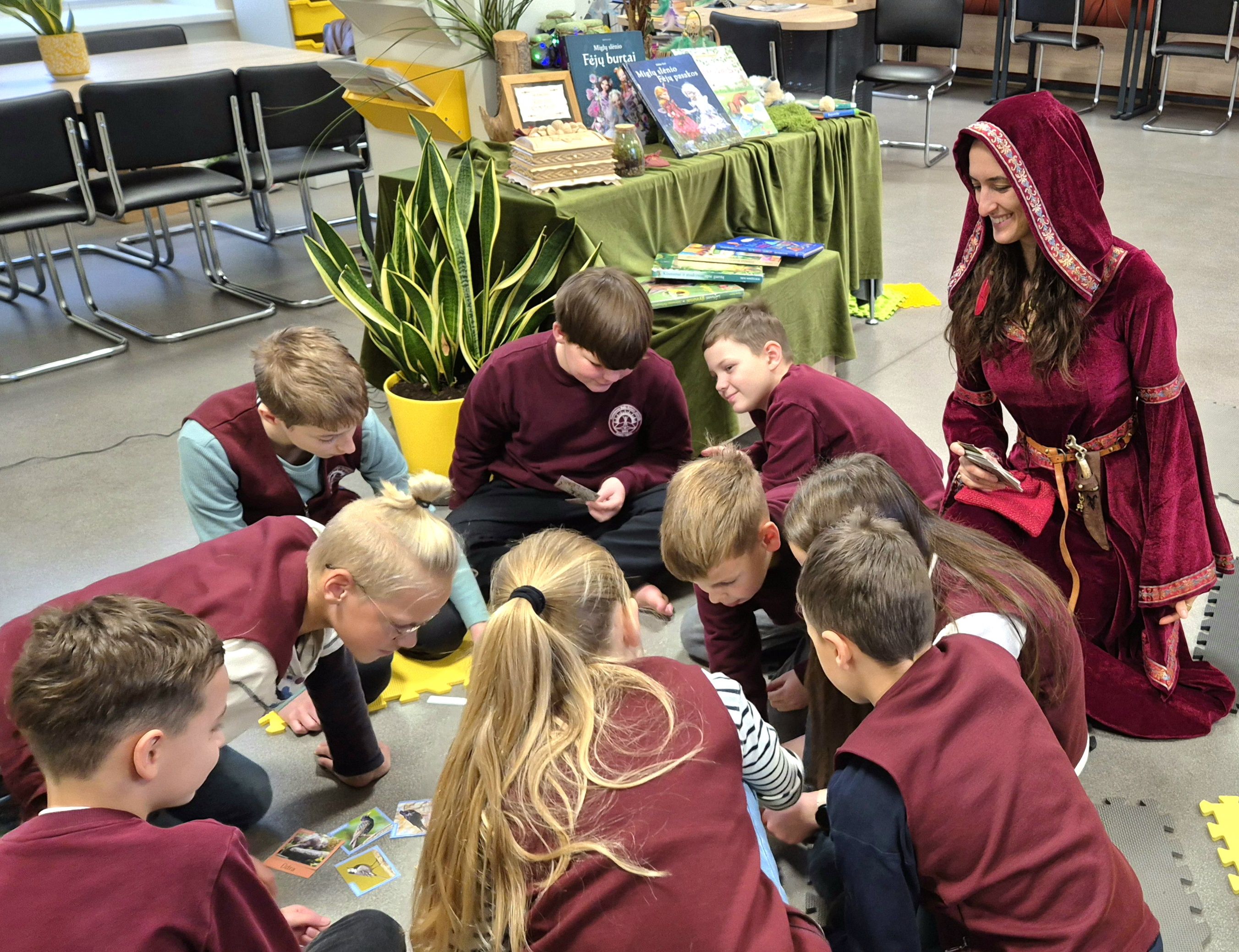 Lapkričio 11 d. Ramučių bibliotekos lankytojai buvo pakviesti į nepaprastą kelionę po paslaptingą gamtos pasaulį – čia pristatyta kerinti interaktyvi instaliacija „Stebuklingo miško pasakos“, kurią sukūrė Kauno rajono savivaldybės viešosios bibliotekos dailininkė Dainora Minkevičiūtė. Stebuklingo miško karalystėje svečiavosi Karmėlavos Balio Buračo gimnazijos Ramučių skyriaus ketvirtokai, lydimi mokytojos Reginos Zubkovos. Edukacijos metu geraširdė bibliotekos raganaitė Dainora pakvietė juos į pojūčių kupiną pažintinę kelionę. Mažieji dalyviai basomis žingsniavo sensoriniu miško takeliu, naudodami korteles atpažino miško gyvūnus, augalus ir grybus, bandė atspėti įvairius gamtos kvapus. Ši patirtis ne tik sužadino vaikų smalsumą ir kūrybiškumą, bet ir skatino juos labiau pažinti gamtą bei saugoti aplinką.