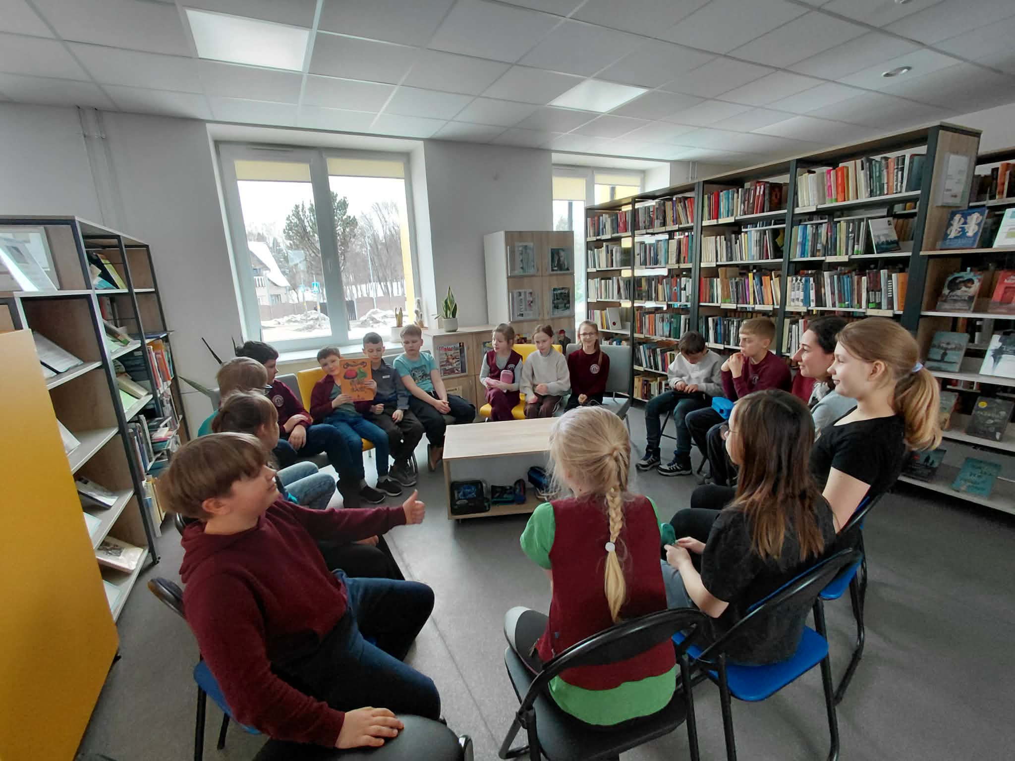 Ramučių bibliotekoje vyko jauki ir kūrybinga popietė „Skaitau ir piešiu lietuvišką pasaką“, skirta Lietuvių kalbos dienoms paminėti. Renginyje dalyvavo Karmėlavos Balio Buračo gimnazijos Ramučių skyriaus trečiokai kartu su mokytoja S. Balnyte. Popietės metu skaitėme ir aptarėme pasakas iš Vytauto V. Landsbergio knygos „Obuolių pasakos ir kriaušių“. Vaikai klausėsi „Pasakos apie obuolį Antaną“, „Kriaušelių kaimas“ ir „Pavasaris“. Šios istorijos ne tik pralinksmino, bet ir paskatino susimąstyti apie draugystę, bendruomeniškumą, gamtos grožį bei metų laikų kaitą.