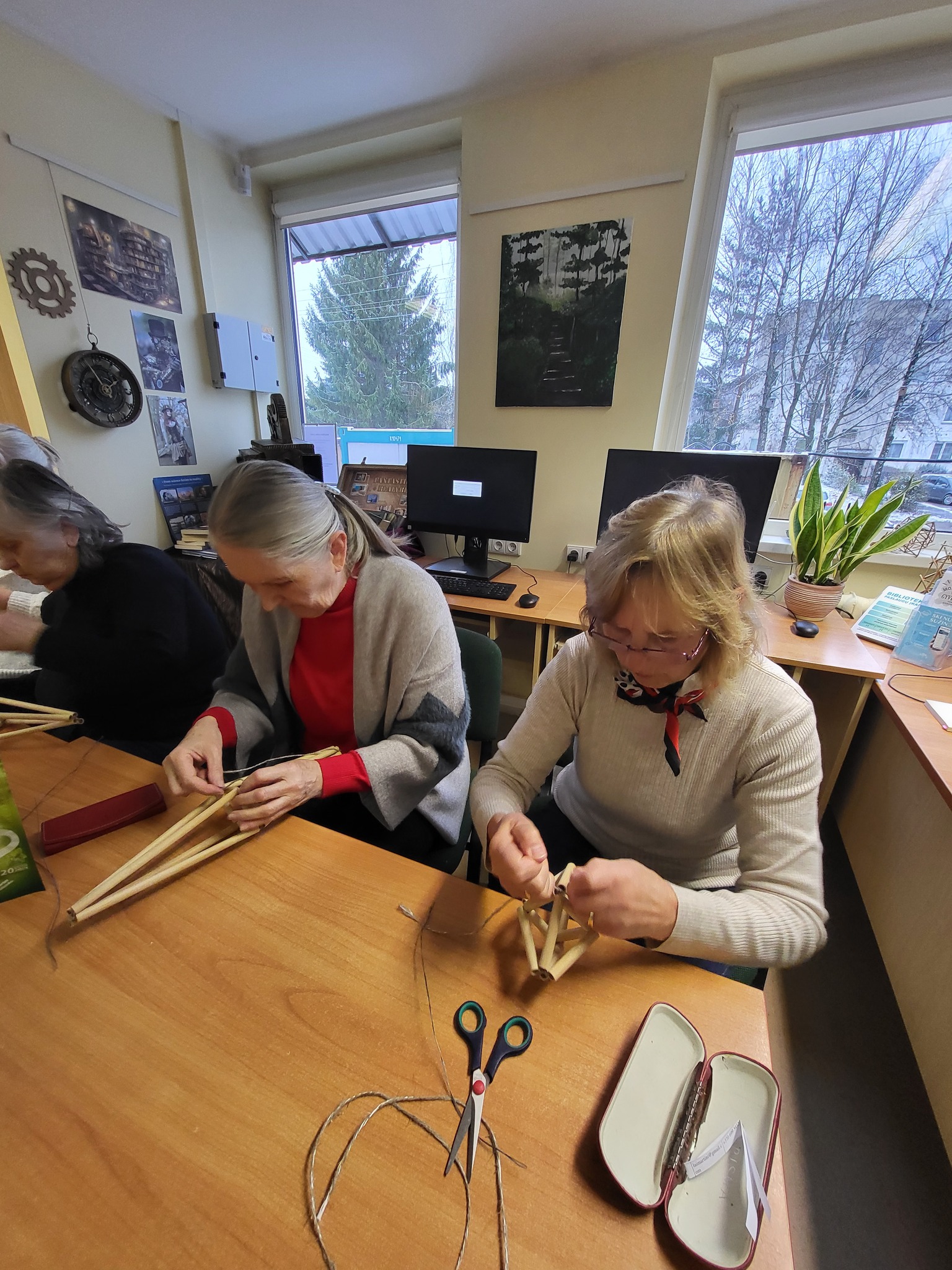 Lapkričio 26 d. bibliotekoje vyko edukacija „Kalėdinis žaisliukas – kabantys sodai“, kurios metu senjorės rišo bambuko lazdeles, kūrė subtilius ornamentus ir klausėsi pasakojimų apie šios tradicijos prasmę – apie harmoniją, kuri gimsta iš paprastumo.