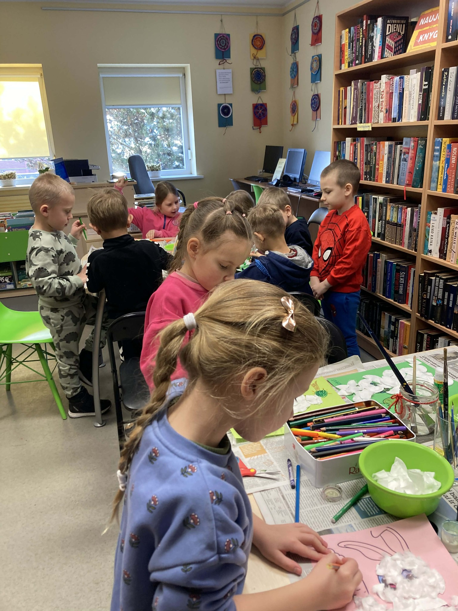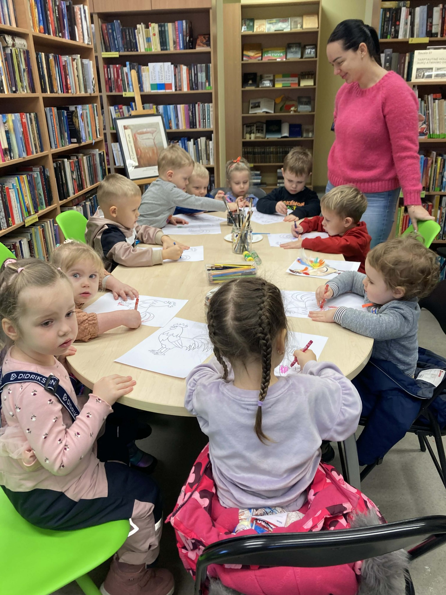 Bibliotekoje svečiavosi Karmėlavos lopšelio-darželio „Žilvitis“ grupė „Žvaigždutės“. Mažieji kartu su bibliotekininke leidosi į pasakų pasaulį. Ypač sušildė vaikų dovana bibliotekai – knygutė, kurios istorijas sugalvojo patys vaikai, o auklėtojos jų mintis pavertė rašytais žodžiais. Garsiai skaitėme lietuvių liaudies pasakas, o kūrybinėje veikloje mažieji tapo tikrais menininkais – kūrė spalvotus gaidelius, juos spalvino, puošė plunksnelėmis, o kartu lavino spalvų, formų pažinimą ir smulkiąją motoriką. Bibliotekoje lavinama vaizduotė, kūrybingumas ir meilė skaitymui.
