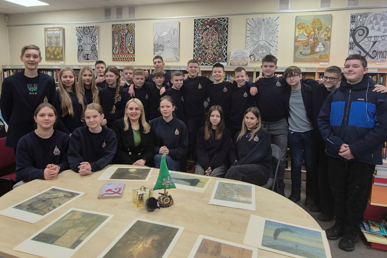 Drauge su Domeikavos gimnazijos septintos klasės moksleiviais ir lietuvių kalbos mokytoja Edita Gudžiūniene analizavome, kaip literatūra ir menas papildo vienas kitą ir padeda žmogui augti. Kalbėjome apie fikcijos ir realybės santykį literatūros bei meno kūriniuose, jų galią sukurti emocinį poveikį bei sužadinti skirtingus jausmus. Pasitelkę fotomenininko E. Butkevičiaus fotografijų ciklą iš 1995 m. nepilnamečių kolonijos „Bespalvis dangus“ ir M. K. Čiurlionio meno kūrinius, kalbėjome apie tai, kaip menas ir žodis gali tapti savotišku kompasu žmogaus vidiniame pasaulyje, kaip žodžiai ir meninės formos padeda suprasti save, ugdo vaizduotę. Susitikimo pabaigoje dalinomės įžvalgomis ir refleksijomis.