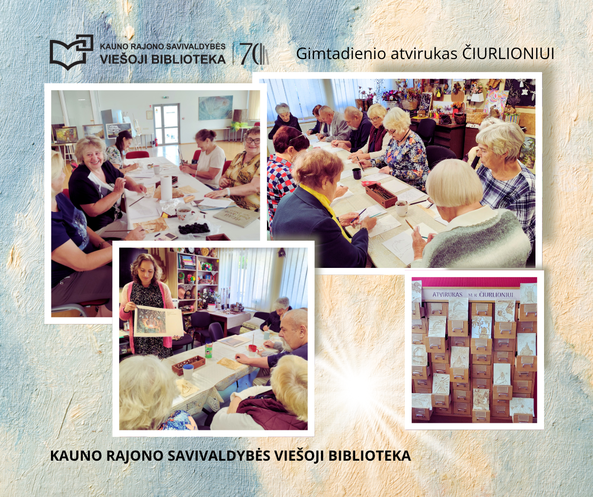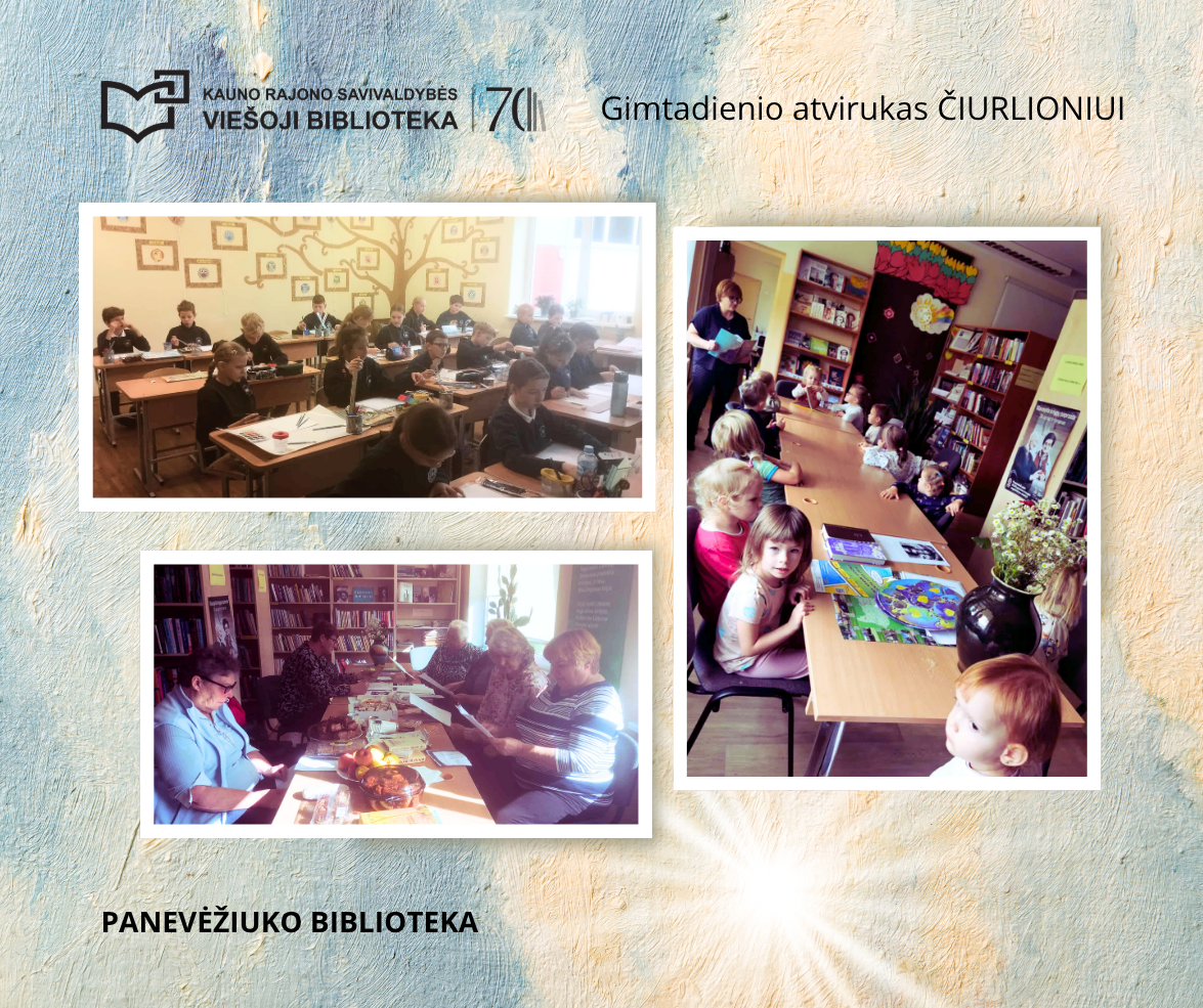 Rugsėjo 22-ąją buvo minimos Mikalojaus Konstantino Čiurlionio 150-osios gimimo metinės, tad visą rugsėjo mėnesį Kauno rajono savivaldybės viešojoje bibliotekoje ir trisdešimtyje jos padalinių Kauno rajone vyko gausybė veiklų, kurių tikslas – padėti pažinti ir aktualizuoti lietuvių kilmės genijaus kūrybą. Biblioteka su padaliniais įgyvendino akciją „Gimtadienio atvirukas Čiurlioniui“. Edukacijose bei kūrybinės dirbtuvėse, atveriančiose M. K. Čiurlionio gyvenimo ir kūrybos lobynus, dalyvavo arti 800 įvairaus amžiaus bibliotekos lankytojų. Akcijos veiklos ne tik atskleidė esminius didžiojo menininko kūrybos motyvus, bet ir skatino individualų kūrybiškumą.