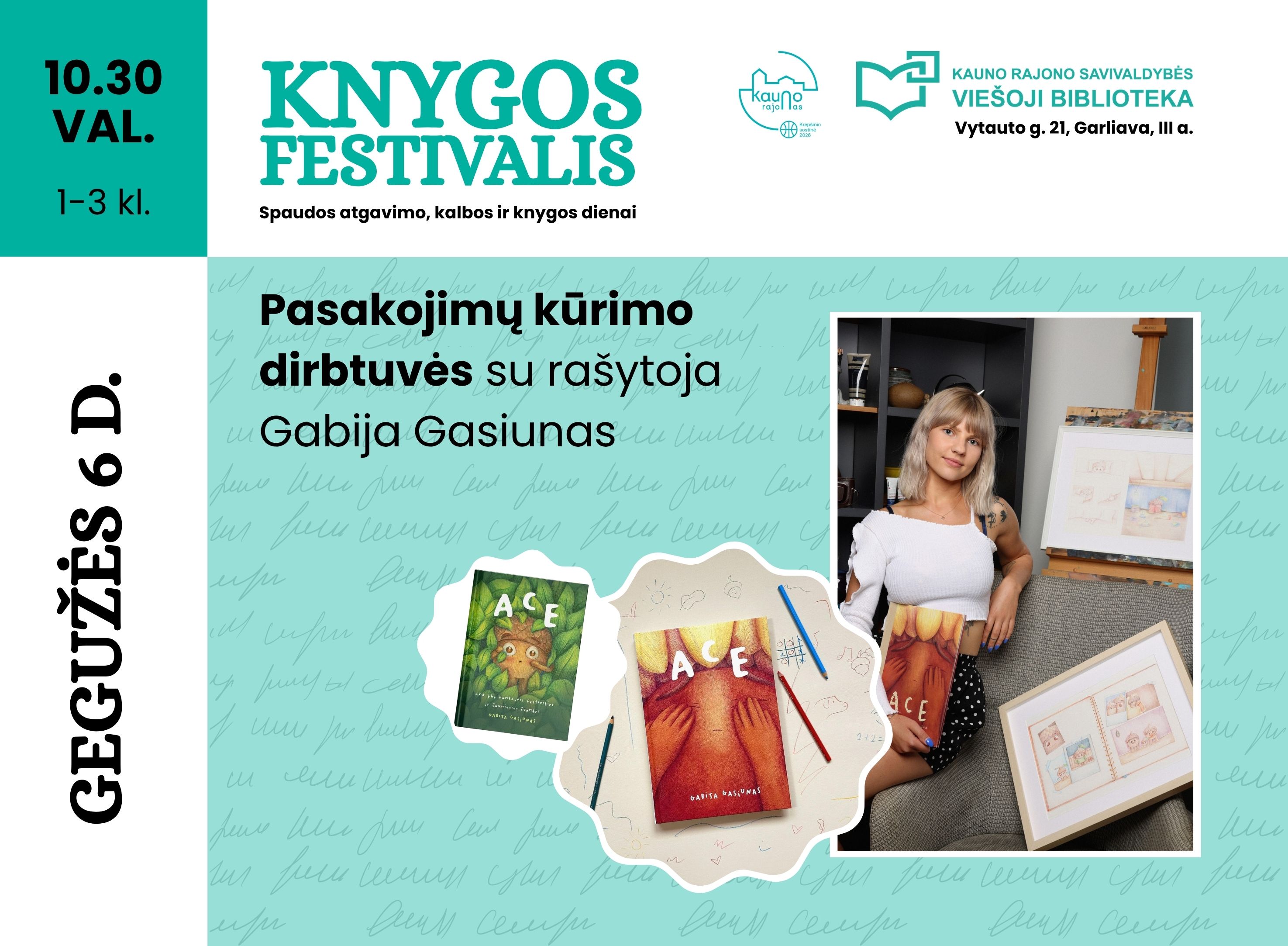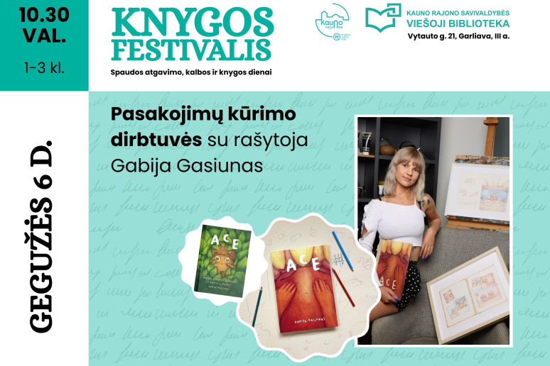10.30–11.30 val. Pasakojimų kūrimo dirbtuvės su rašytoja Gabija Gasiunas