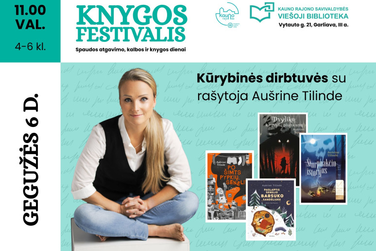 11.00–12.30 val. Kūrybinės dirbtuvės su rašytoja Aušrine Tilinde