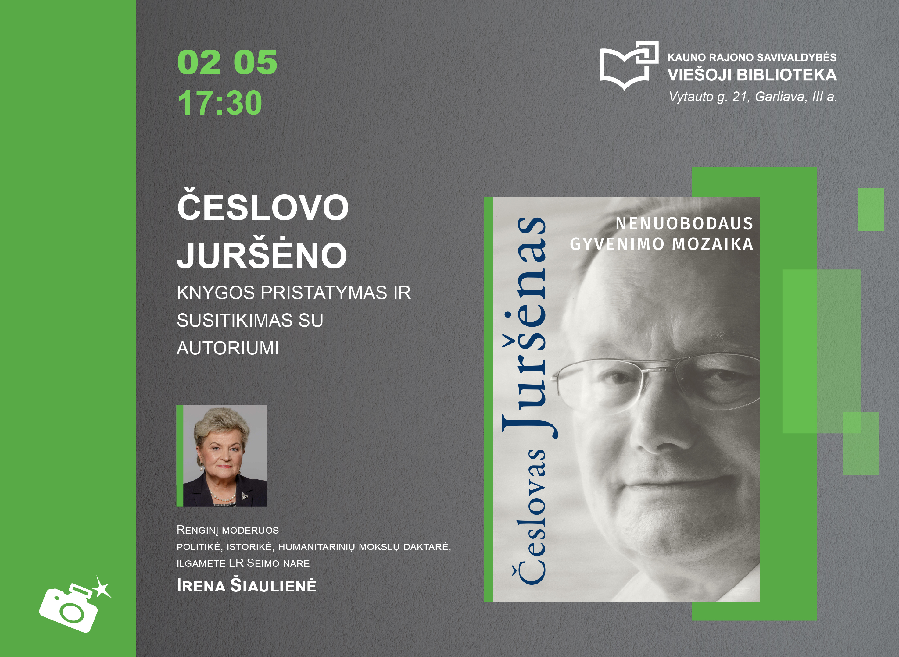 Renginį moderuos politikė, istorikė, humanitarinių mokslų daktarė, ilgametė LR Seimo narė Irena Šiaulienė.