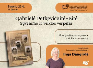 „Gabrielė Petkevičaitė-Bitė. Gyvenimo ir kūrybos verpetai“ – monografijos pristatymas ir susitikimas su autore Inga Daugirde