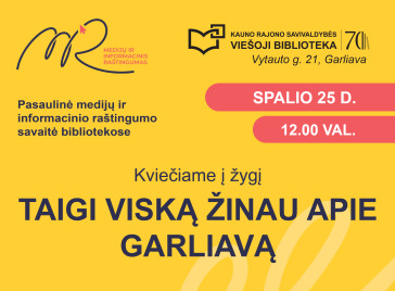 Šeštadienį bibliotekos darbo laikas 10.00–15.45