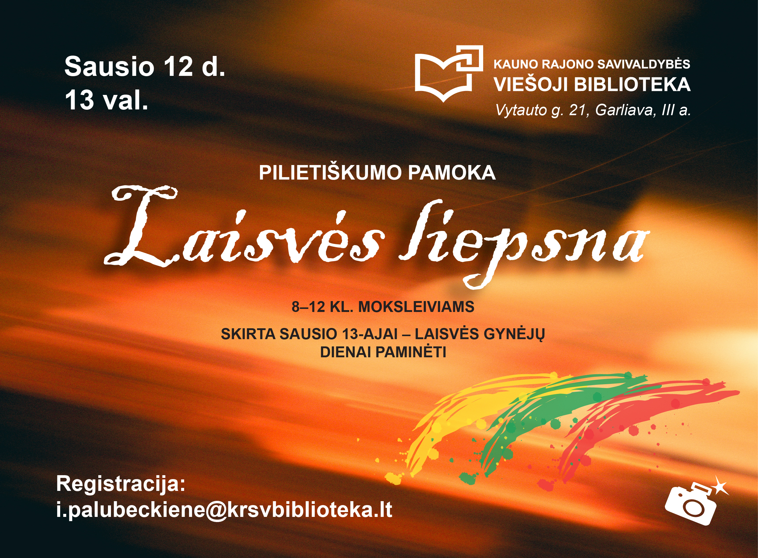 Minėdami Laisvės gynėjų dieną ir lemtingų 1991 m. Sausio 13-osios įvykių 35-ąsias metines, kviečiame 8–12 klasių mokinius į pilietiškumo pamoką bibliotekoje.