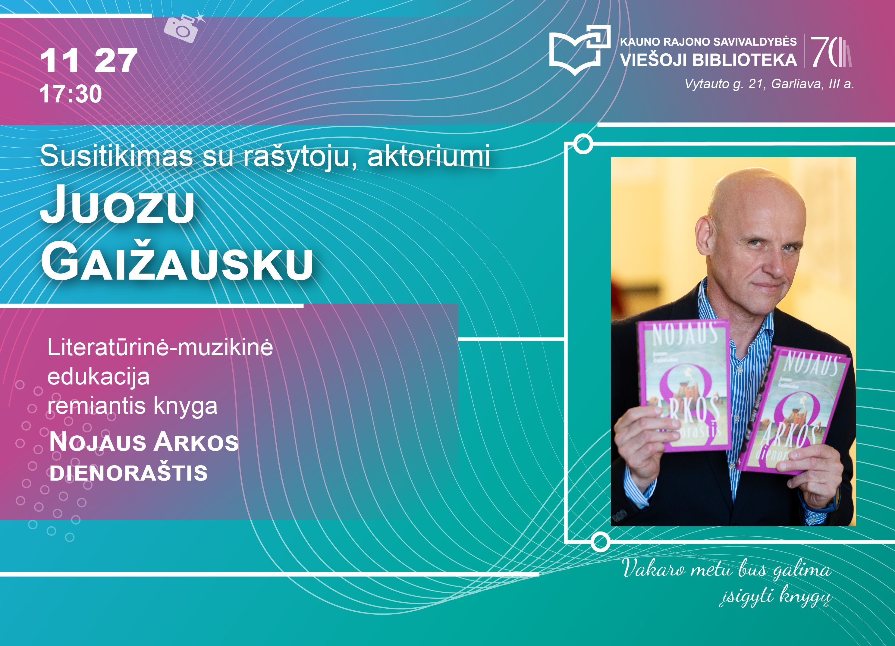 Lapkričio 27-osios, ketvirtadienio, vakarą kviečiame Jus į susitikimą su rašytoju, aktoriumi Juozu Gaižausku.