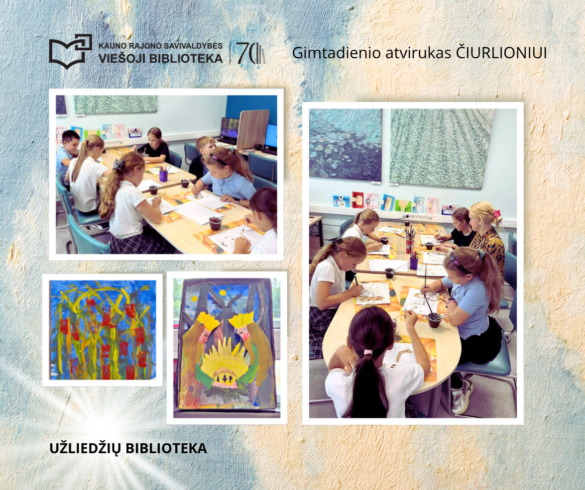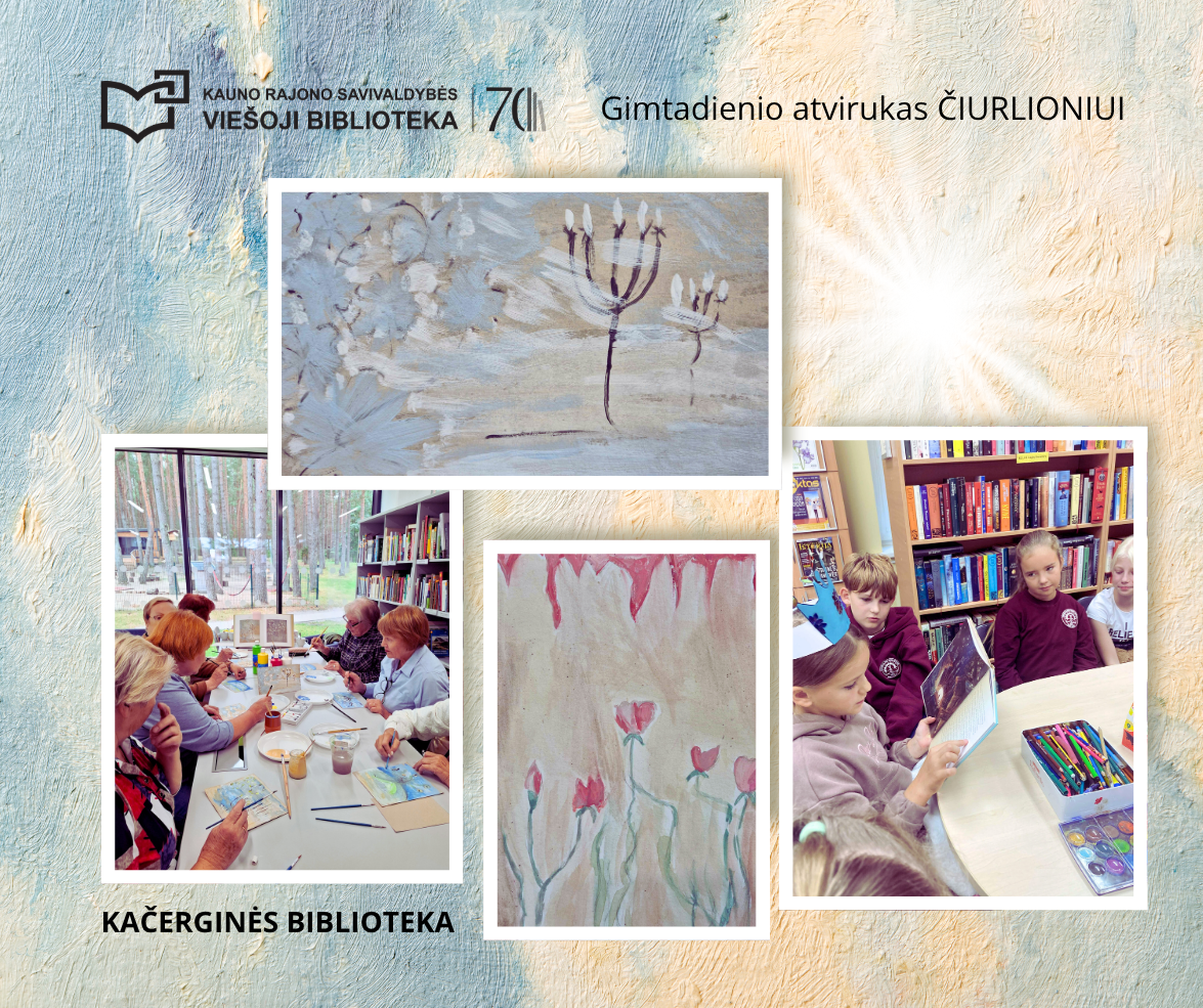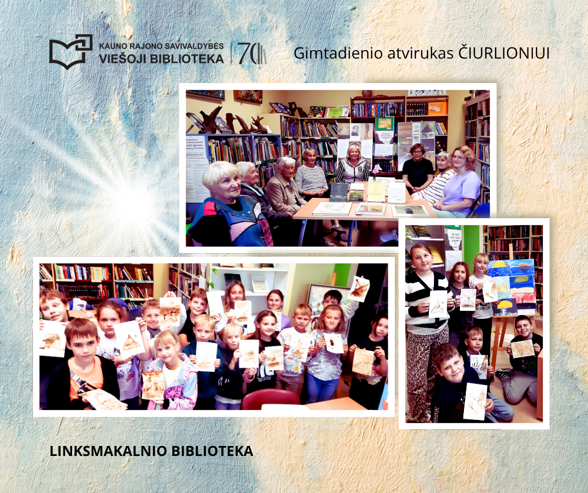 2025 m. rugsėjo 22-ąją buvo minimos Mikalojaus Konstantino Čiurlionio 150-osios gimimo metinės, tad visą rugsėjo mėnesį Kauno rajono savivaldybės viešojoje bibliotekoje ir trisdešimtyje jos padalinių Kauno rajone vyko gausybė veiklų, kurių tikslas – padėti pažinti ir aktualizuoti lietuvių kilmės genijaus kūrybą. Biblioteka su padaliniais įgyvendino akciją „Gimtadienio atvirukas Čiurlioniui“. Edukacijose bei kūrybinės dirbtuvėse, atveriančiose M. K. Čiurlionio gyvenimo ir kūrybos lobynus, dalyvavo arti 800 įvairaus amžiaus bibliotekos lankytojų. Akcijos veiklos ne tik atskleidė esminius didžiojo menininko kūrybos motyvus, bet ir skatino individualų kūrybiškumą. Dalijamės akcijos akimirkomis.