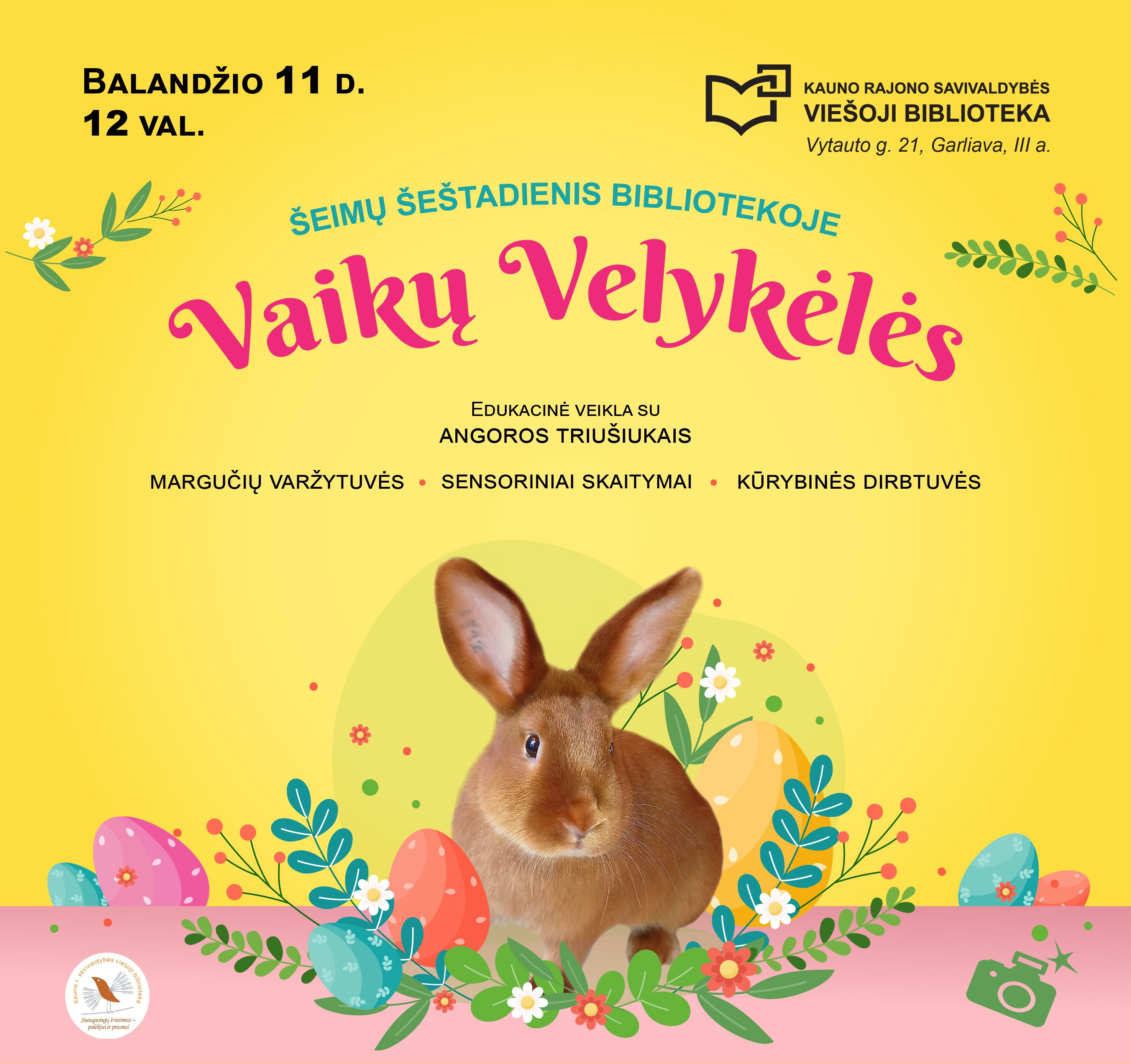 Kviečiame šeimas į šiltą ir žaismingą Šeimų šeštadienį bibliotekoje – Vaikų Velykėles! Balandžio 11-ąją biblioteka virs pavasario stebuklų kampeliu.