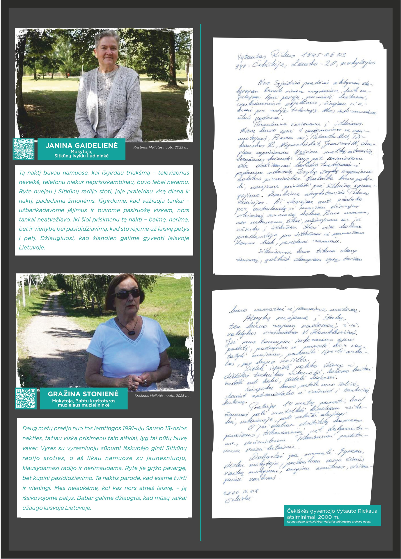 Prisimindami 1991-ųjų Sausio 13-ąją, klausomės tų, kurie tą naktį buvo Sitkūnuose. Radijo stotis čia tapo vienu iš strateginių Lietuvos laisvės taškų. Tuo metu Sitkūnuose dirbę žmonės prisimena įtampą, tylą ir ryžtą, lydimą vilties, kad Lietuva atsilaikys. Šiandien Sitkūnai tyliai liudija tą didžiulę drąsą. Šie žmonės – mūsų istorijos dalis, gyvi liudininkai, kurie savo pasakojimais perduoda laisvės vertę naujoms kartoms.