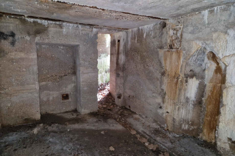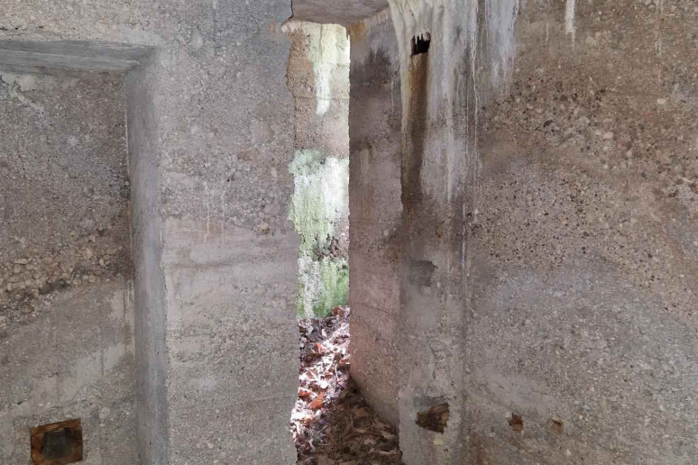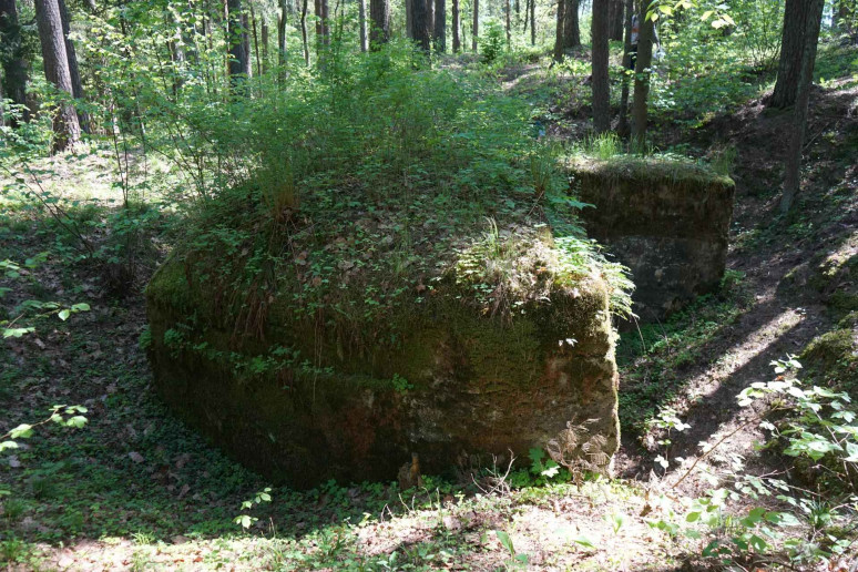 Kompaktinė, trapecijos formos plano, vieno aukšto patalpa su dviem prieangiais slėptuvė, esanti Karmėlavos seniūnijoje, Narėpų kaime.