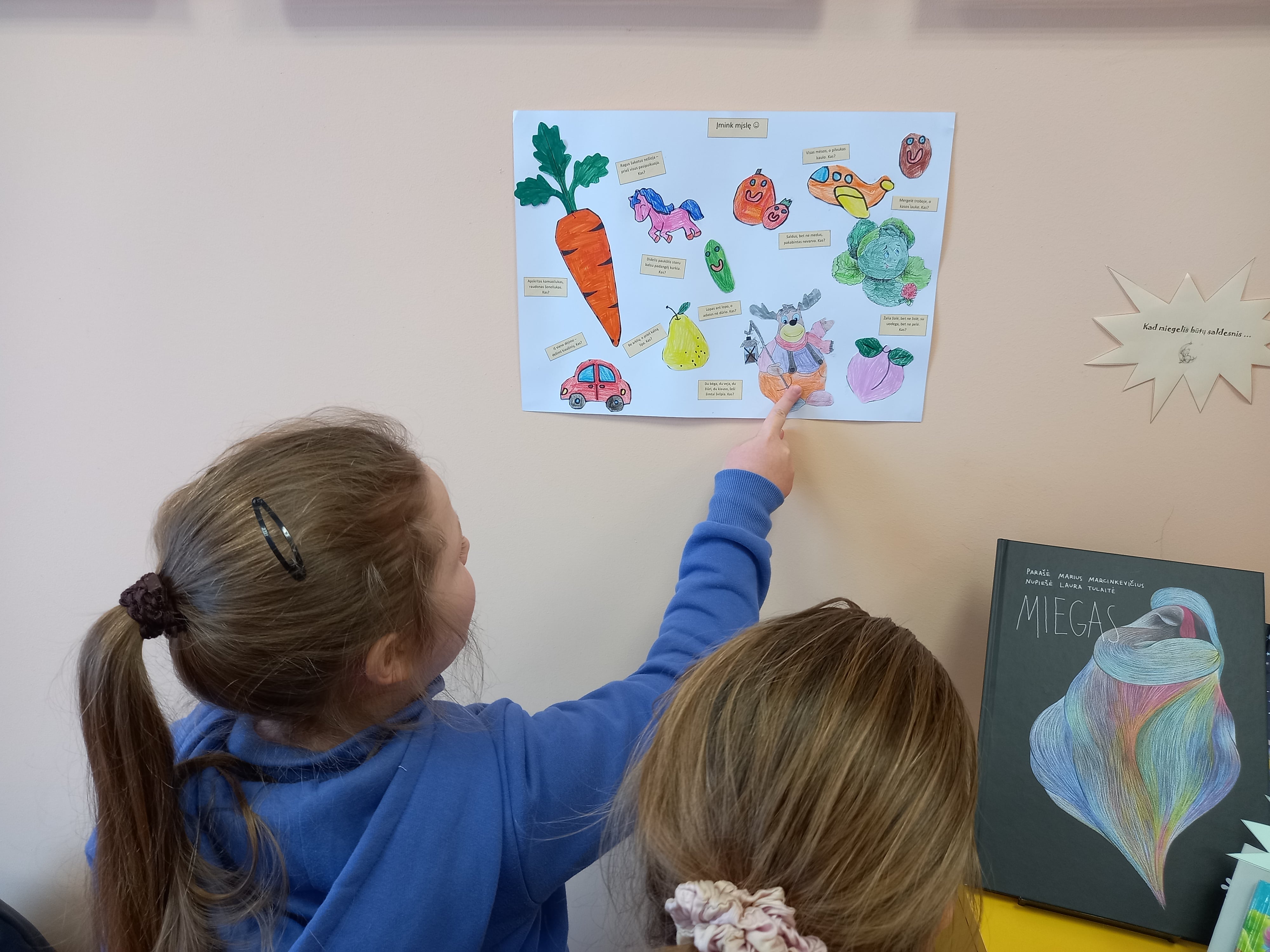 Be to, noriu pasidžiaugti darbščiomis Sitkūnų bibliotekos vaikų būrelio „Kūrybinė popietė“ narėmis ir jų indėliu rengiant mįslių plakatą bibliotekoje bei pojūčių balionus.