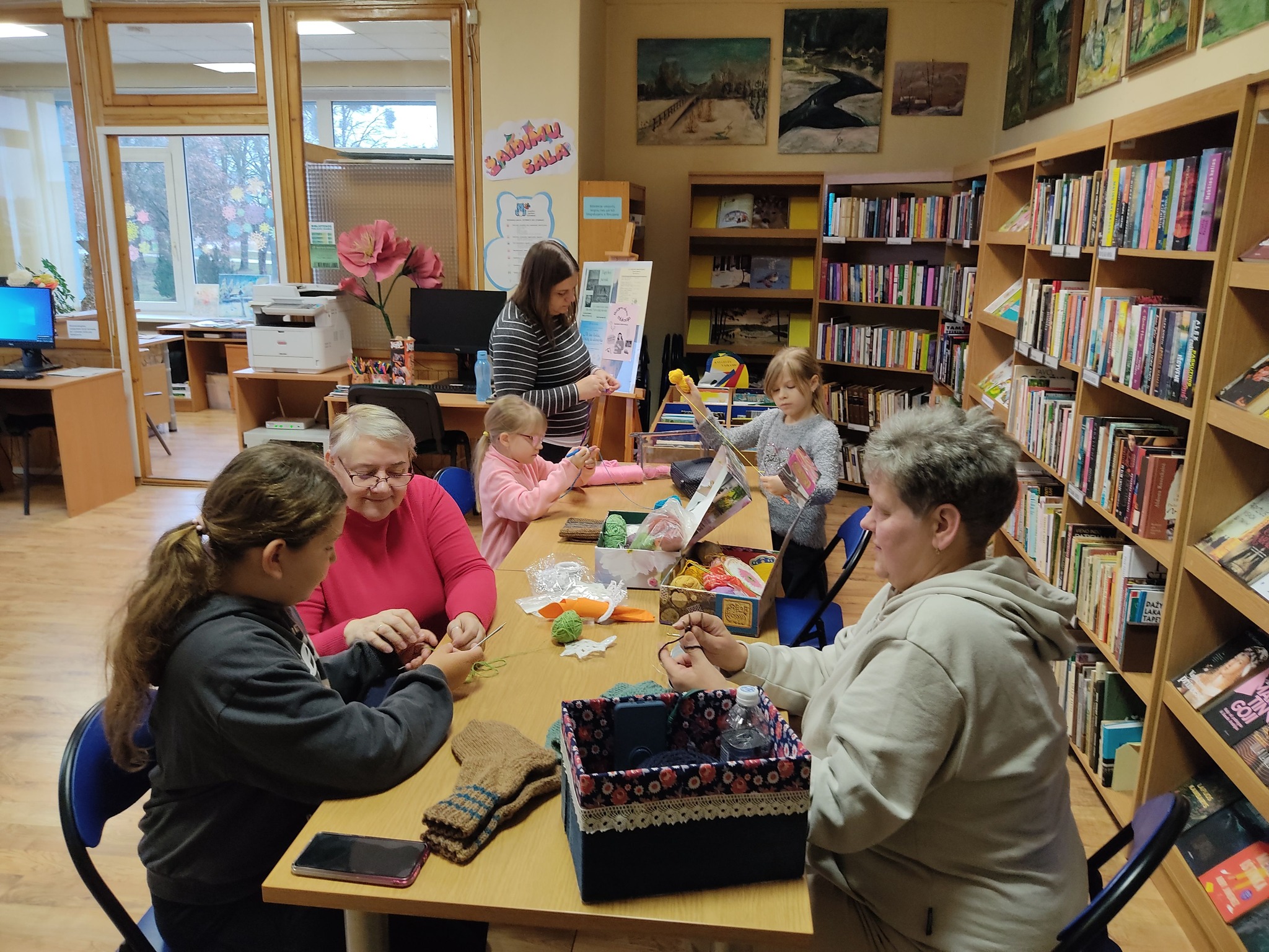 Sausio 18 d., šeštadienio, rytmetį bibliotekoje susirinko rankdarbių mėgėjos: mezgėme, nėrėme ir rišome. Onutė ir Zita mokė megzti kojinės kulną bei nerti vąšeliu. Edukacijos jaunosios dalyvės mus išmokė rišti apyrankes. Laikas prabėgo smagiai ir turiningai.