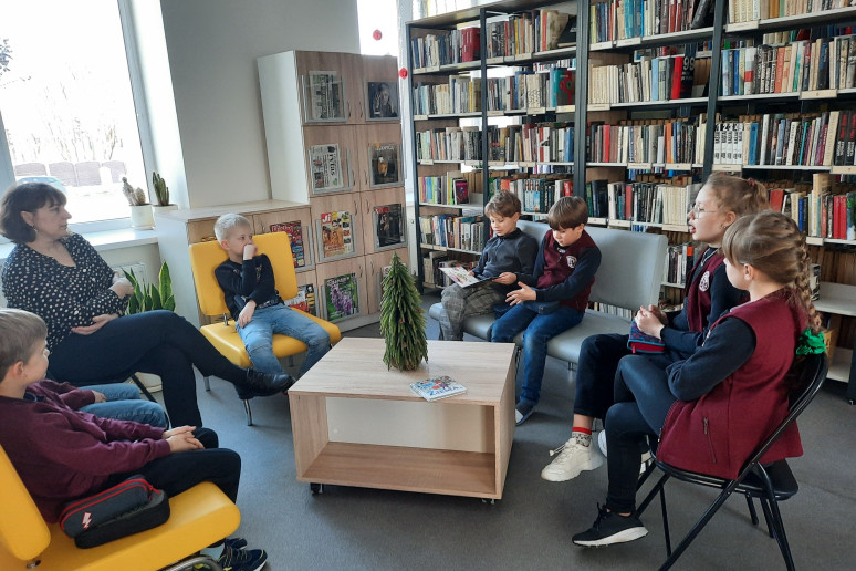 Gruodžio 23 dieną į biblioteką sugužėjo Karmėlavos Balio Buračo gimnazijos Ramučių skyriaus antrokai su mokytoja L. Bubliene. Vaikučiai dalyvavo lietuvių poetų sukurtų eilėraščių raiškiojo deklamavimo rytmetyje. Vaikai iš anksto ruošėsi šventei, mintinai išmoko po eilėraštį apie Kalėdas ir padeklamavo. Renginio metu klausėmės linksmų istorijų iš K. Kasparavičiaus knygelės „Kalėdos! Kalėdos!“ apie baltųjų lokių ir ožkų Kalėdas.