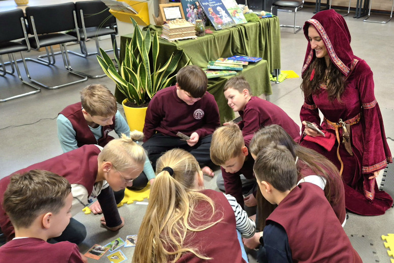 Lapkričio 11 d. Ramučių bibliotekos lankytojai buvo pakviesti į nepaprastą kelionę po paslaptingą gamtos pasaulį – čia pristatyta kerinti interaktyvi instaliacija „Stebuklingo miško pasakos“, kurią sukūrė Kauno rajono savivaldybės viešosios bibliotekos dailininkė Dainora Minkevičiūtė. Stebuklingo miško karalystėje svečiavosi Karmėlavos Balio Buračo gimnazijos Ramučių skyriaus ketvirtokai, lydimi mokytojos Reginos Zubkovos. Edukacijos metu geraširdė bibliotekos raganaitė Dainora pakvietė juos į pojūčių kupiną pažintinę kelionę. Mažieji dalyviai basomis žingsniavo sensoriniu miško takeliu, naudodami korteles atpažino miško gyvūnus, augalus ir grybus, bandė atspėti įvairius gamtos kvapus. Ši patirtis ne tik sužadino vaikų smalsumą ir kūrybiškumą, bet ir skatino juos labiau pažinti gamtą bei saugoti aplinką.