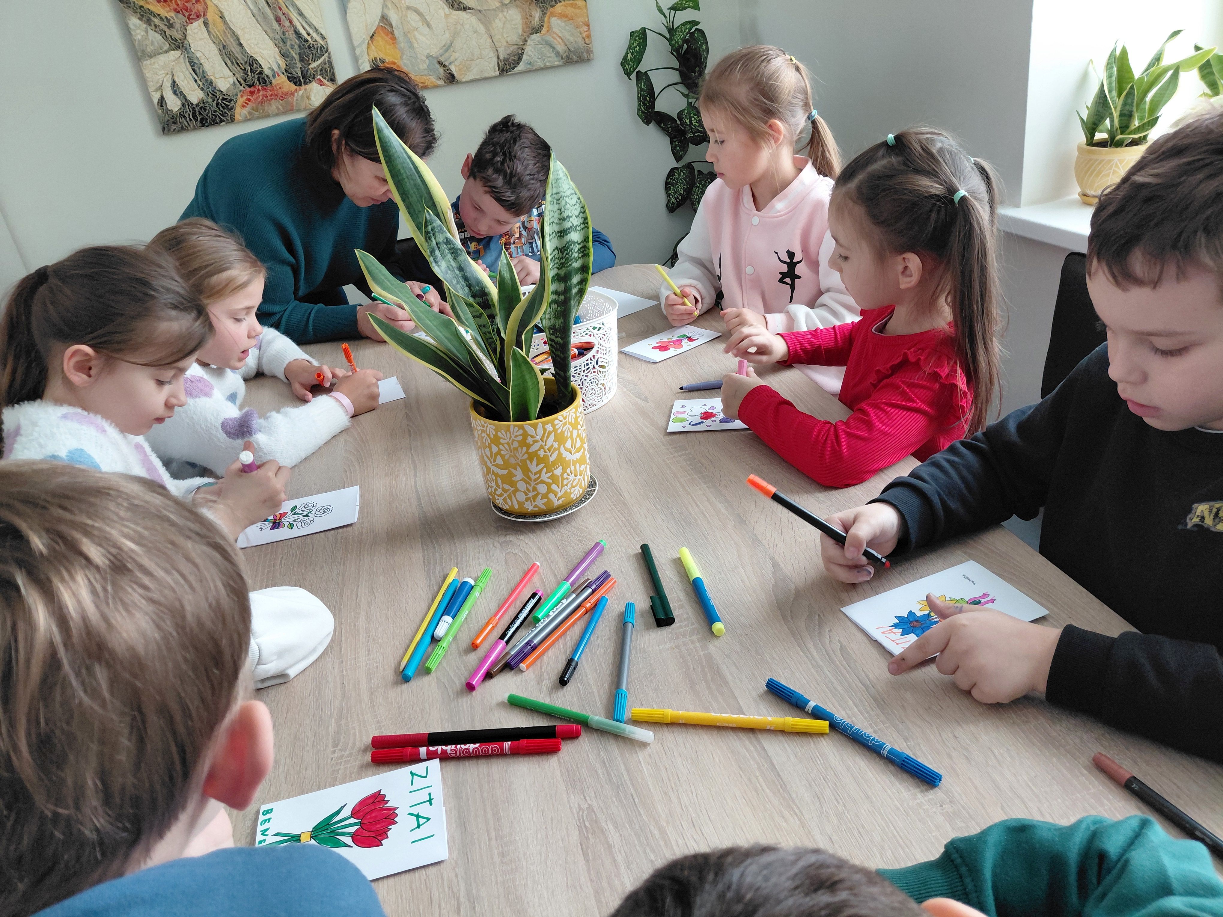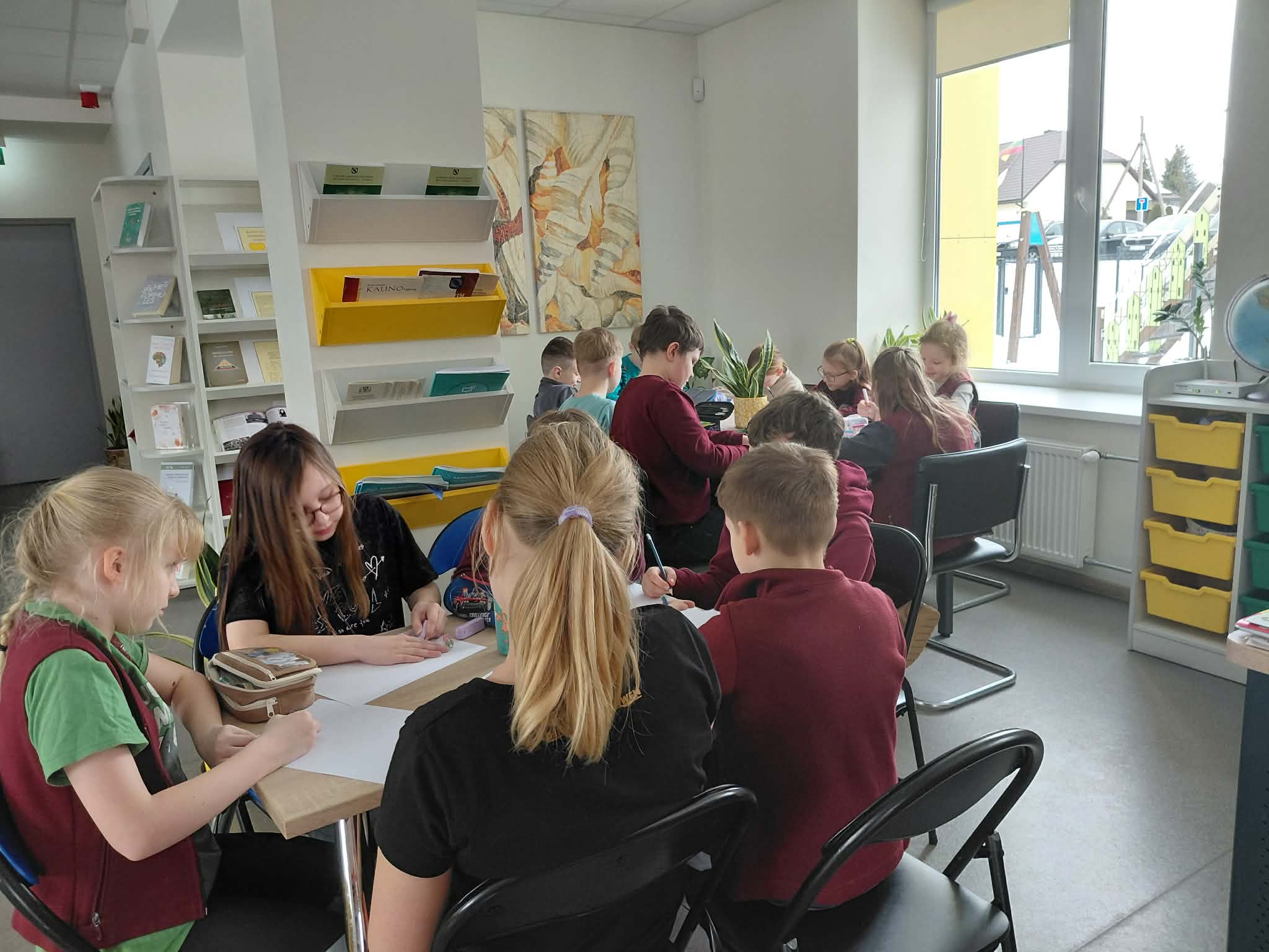 Aptarę perskaitytas pasakas, trečiokai kibo į kūrybinį darbą – kūrė iliustracijas labiausiai patikusioms istorijų akimirkoms. Vaikų piešiniuose atgijo obuolys Antanas, Kriaušelių kaimo gyventojai ir pavasario nuotaikos .Ši popietė tapo gražiu Lietuvių kalbos dienų akcentu – ji priminė, kaip svarbu puoselėti gimtąją kalbą, skaitymo džiaugsmą ir kūrybiškumą.