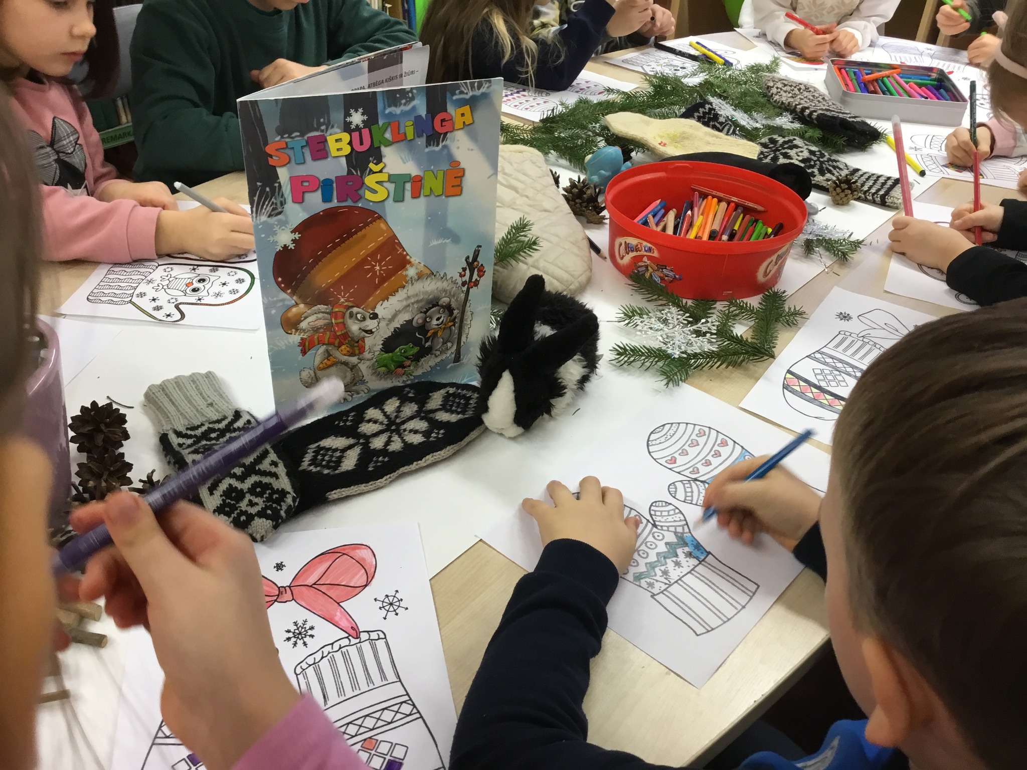 Sausio 22 d. bibliotekoje apsilankius Ringaudų pradinės mokyklos priešmokyklinio ugdymo grupės vaikams vyko pasakaitės ,,Stebuklinga pirštinė“ sensoriniai skaitymai. Kaip smalsu buvo sužinoti mažiesiems, kas surado pirštinę ir kas joje apsigyveno... Vaikų kūrybiškumą atspindėjo kiekvienas pirštinių kampelis, kiekvienas raštas pasakoja savo istoriją.