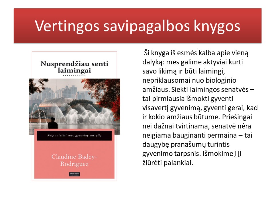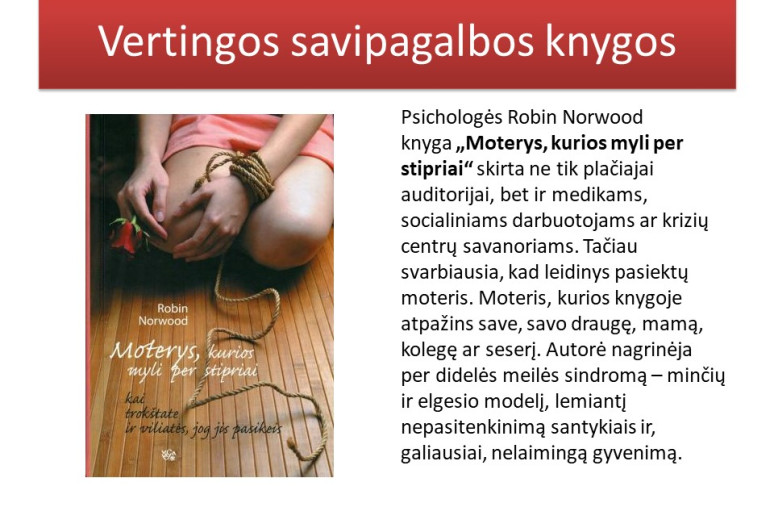 Atnaujintoje Kauno rajono savivaldybės viešosios bibliotekos interneto svetainėje, Virtualių parodų skiltyje, galite rasti biblioterapinių knygų pristatymą. Šios knygos laukia Jūsų dėmesio Kauno rajono savivaldybės viešosios bibliotekos lentynose.
