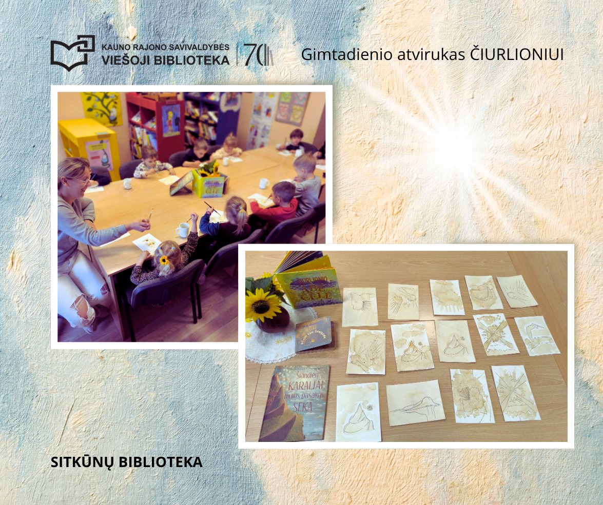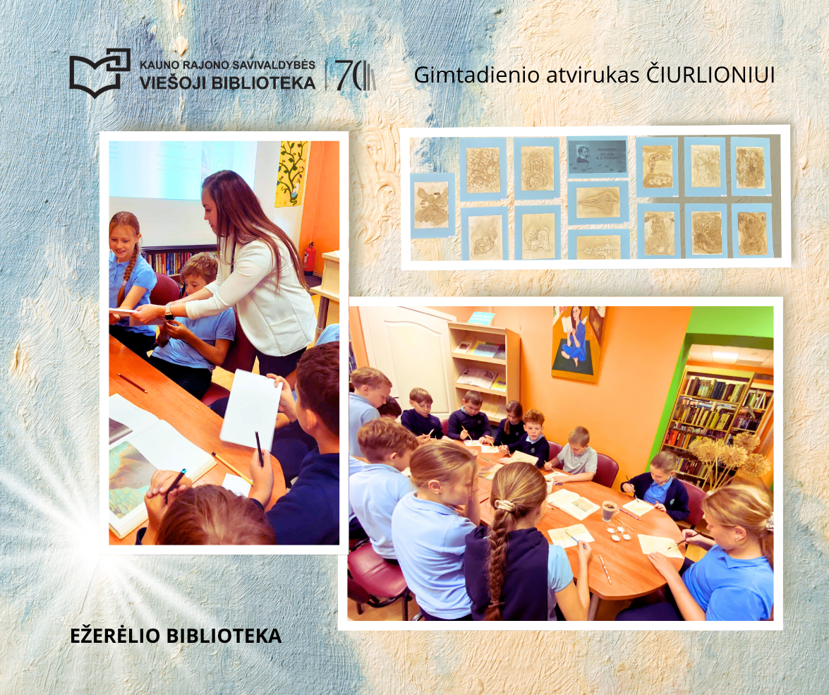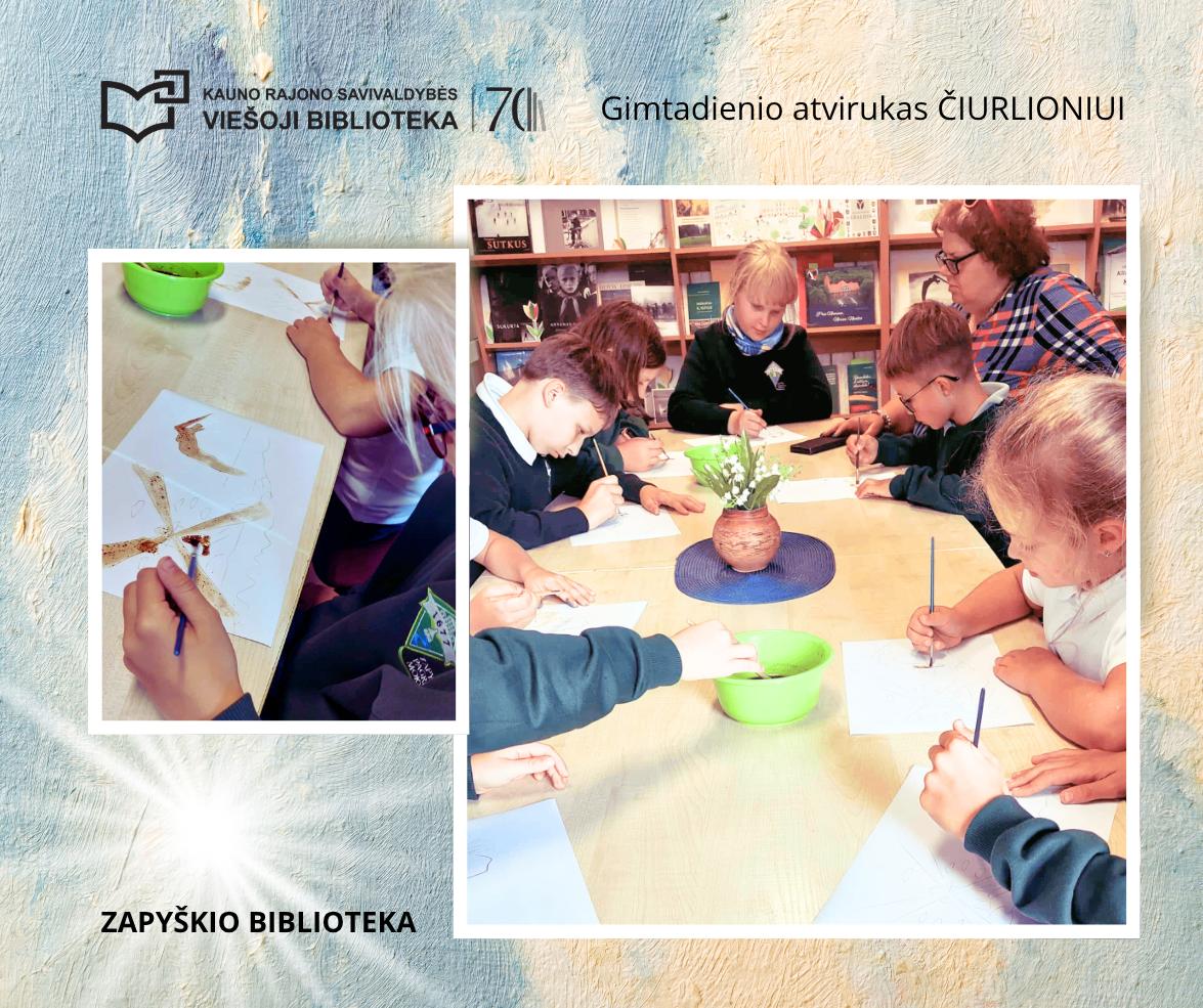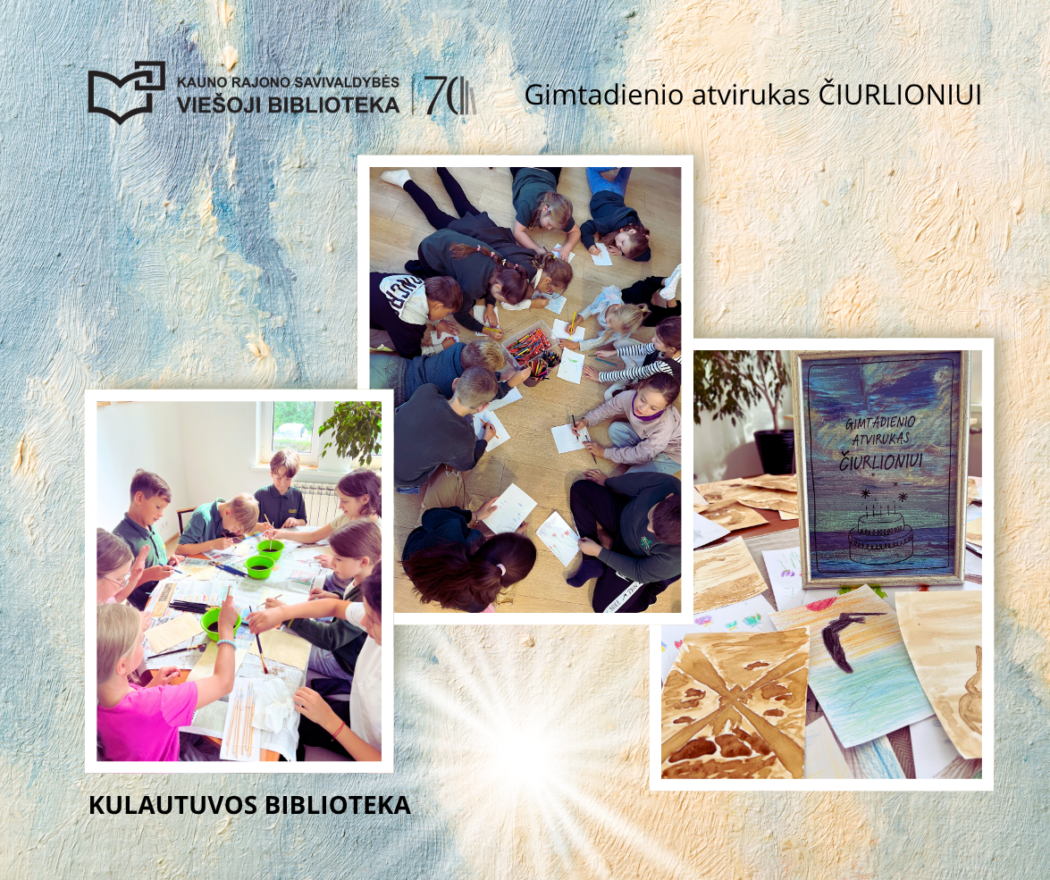 Rugsėjo 22-ąją buvo minimos Mikalojaus Konstantino Čiurlionio 150-osios gimimo metinės, tad visą rugsėjo mėnesį Kauno rajono savivaldybės viešojoje bibliotekoje ir trisdešimtyje jos padalinių Kauno rajone vyko gausybė veiklų, kurių tikslas – padėti pažinti ir aktualizuoti lietuvių kilmės genijaus kūrybą. Biblioteka su padaliniais įgyvendino akciją „Gimtadienio atvirukas Čiurlioniui“. Edukacijose bei kūrybinės dirbtuvėse, atveriančiose M. K. Čiurlionio gyvenimo ir kūrybos lobynus, dalyvavo arti 800 įvairaus amžiaus bibliotekos lankytojų. Akcijos veiklos ne tik atskleidė esminius didžiojo menininko kūrybos motyvus, bet ir skatino individualų kūrybiškumą.