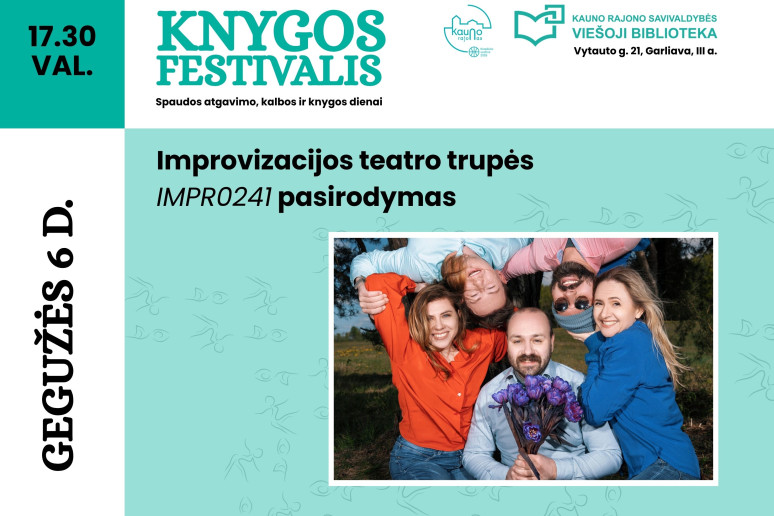 17.30–19.00 val. Improvizacijos teatro trupės IMPRO241 pasirodymas (Eimantas Sakalauskas, Eglė Kordiukovaitė, Benas Rupeikis ir Silvija Šumskienė)