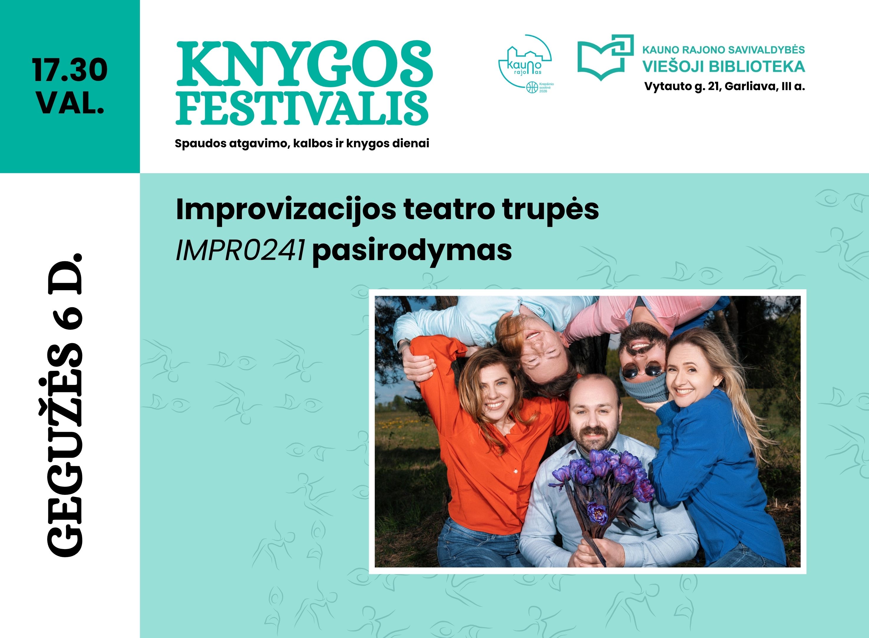 Festivalio kulminacija – improvizacijos teatro trupės IMPRO241 pasirodymas (17.30 val.). Eimanto Sakalausko, Eglės Kordiukovaitės, Beno Rupeikio ir Silvijos Šumskienės istorijos gimsta čia ir dabar, įtraukdamos žiūrovus į nenuspėjamą, gyvą teatrinį vyksmą.
