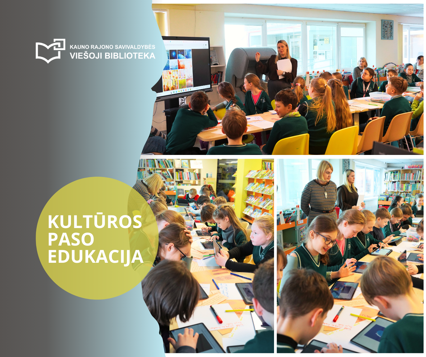 Kauno rajono savivaldybės viešojoje bibliotekoje įvyko Kultūros paso edukacija KTU Vaižganto progimnazijos ketvirtokams. Vyr. bibliotekininkė Indrė Palubeckienė supažindino moksleivius su M. K. Čiurlionio asmenybe ir kūrybine pasaulėjauta. Analizuodami ciklą „Pasaulių sutvėrimas“ ir naudodami planšetes su programėle „Musical Canvas“, vaikai vaizdą pavertė garsu, tyrinėjo spalvos, nuotaikos ir muzikos ryšį. Veikla skatino kūrybiškumą, vaizduotę ir padėjo giliau pažinti meną per šiuolaikines technologijas.
