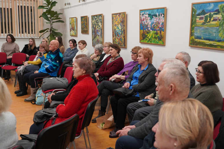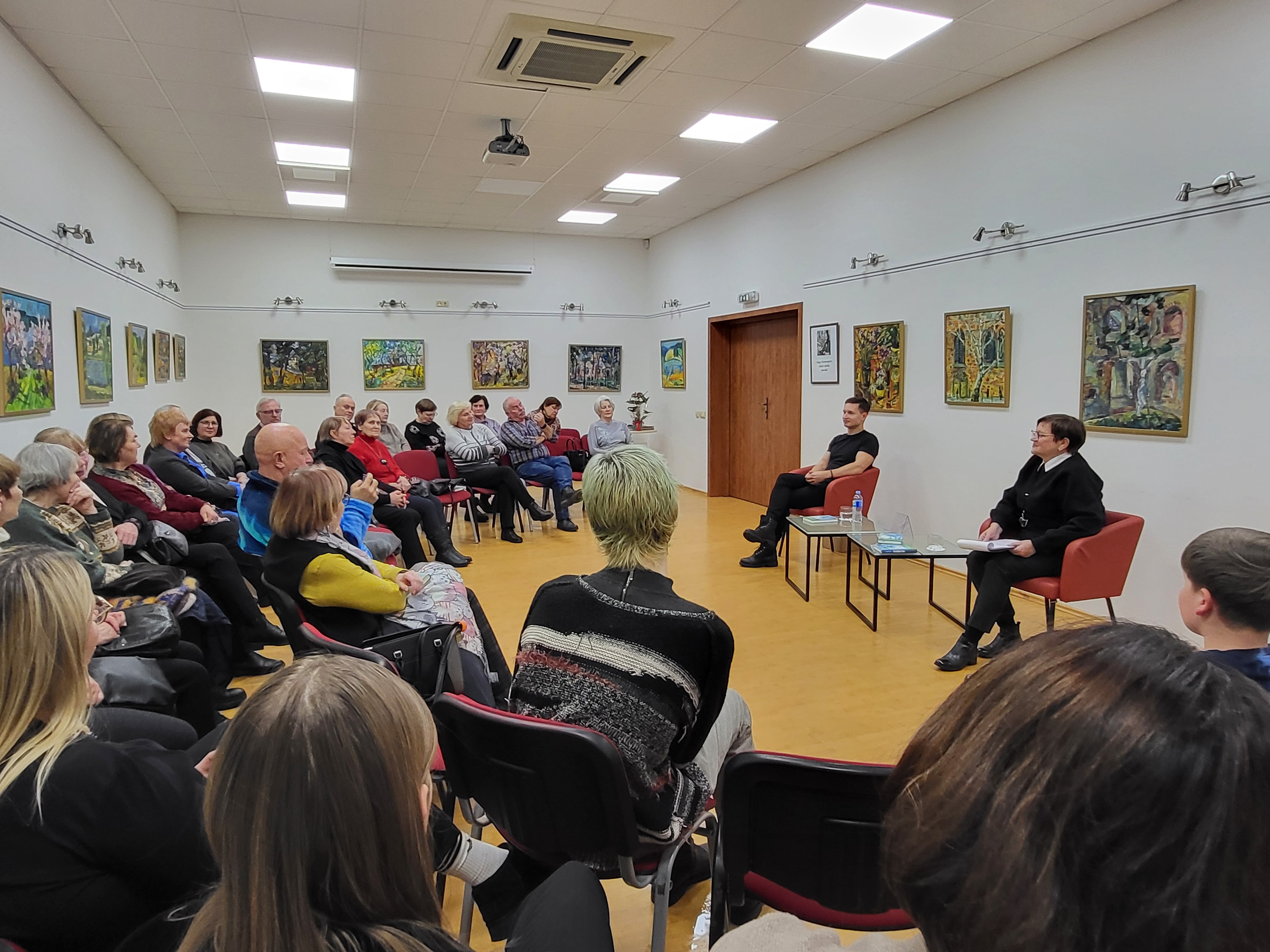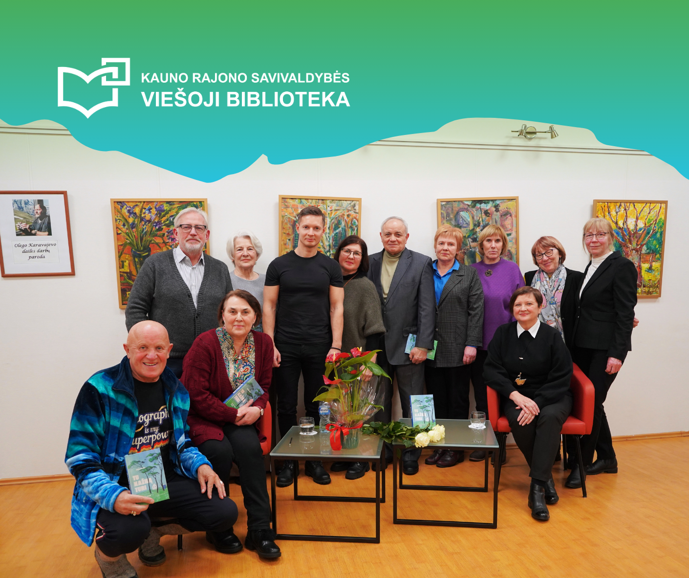 Spalvingų ir labai savitų tapybos darbų, puošiančių salę, kurioje vyko renginys, autorius – šviesaus atminimo dailininkas Olegas Karavajevas, buvęs Garliavos Jonučių gimnazijos technologijų mokytojas. Vaizdinės ir žodinės kūrybos sampynos, įtraukiantis pasakojimas, nuoširdumas, emocijų spalvingumas ir charizma – štai tokį nepaprastą vakarą praleidome bibliotekoje.