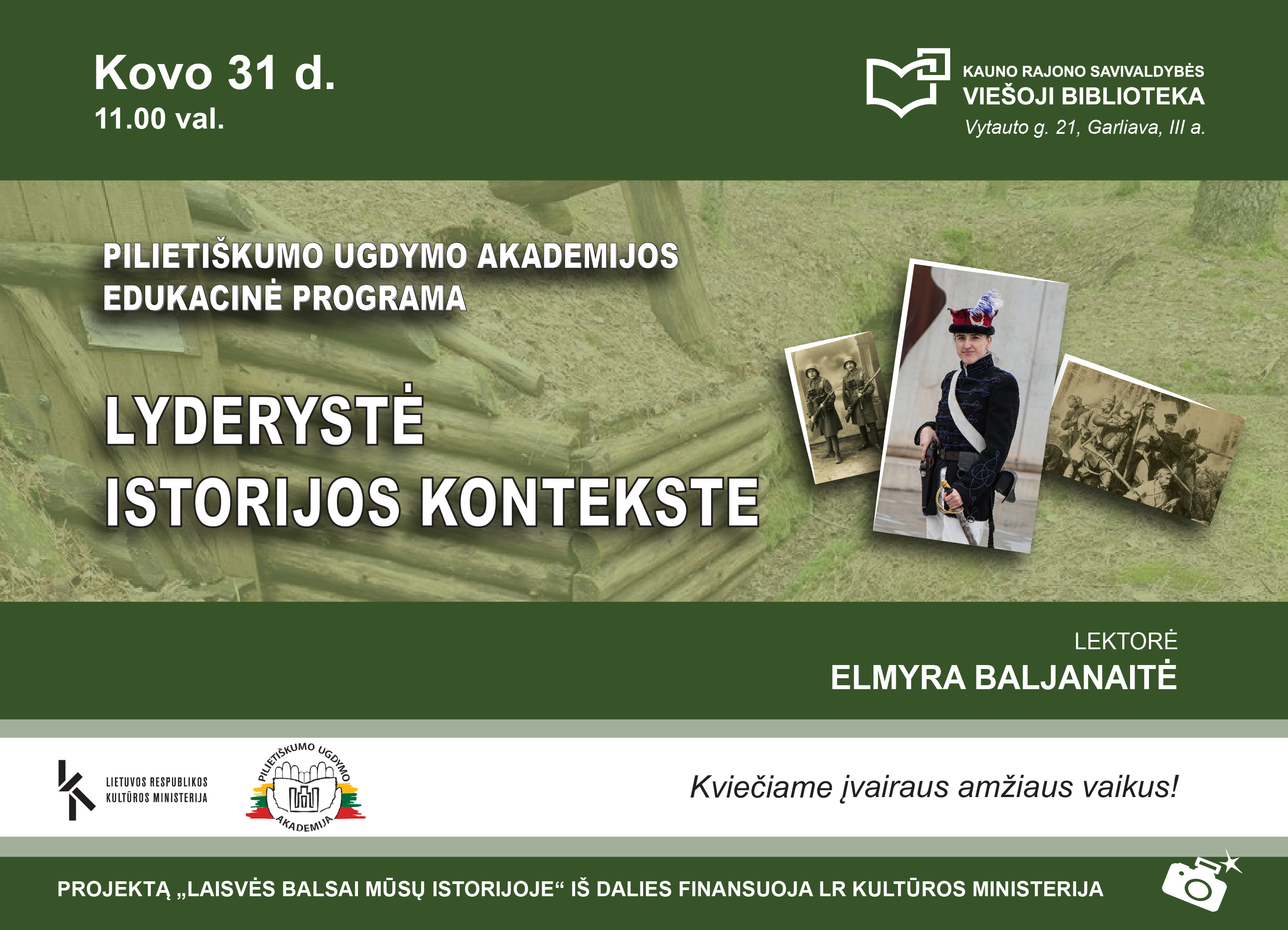 VŠĮ Pilietiškumo ugdymo akademijos edukacinė programa „Lyderystė istorijos kontekste“ – įvairaus amžiaus dalyviams pritaikyta patirtinė veikla, leidžianti gyvai ir įtaigiai pažinti Lietuvos laisvės kovų istoriją.