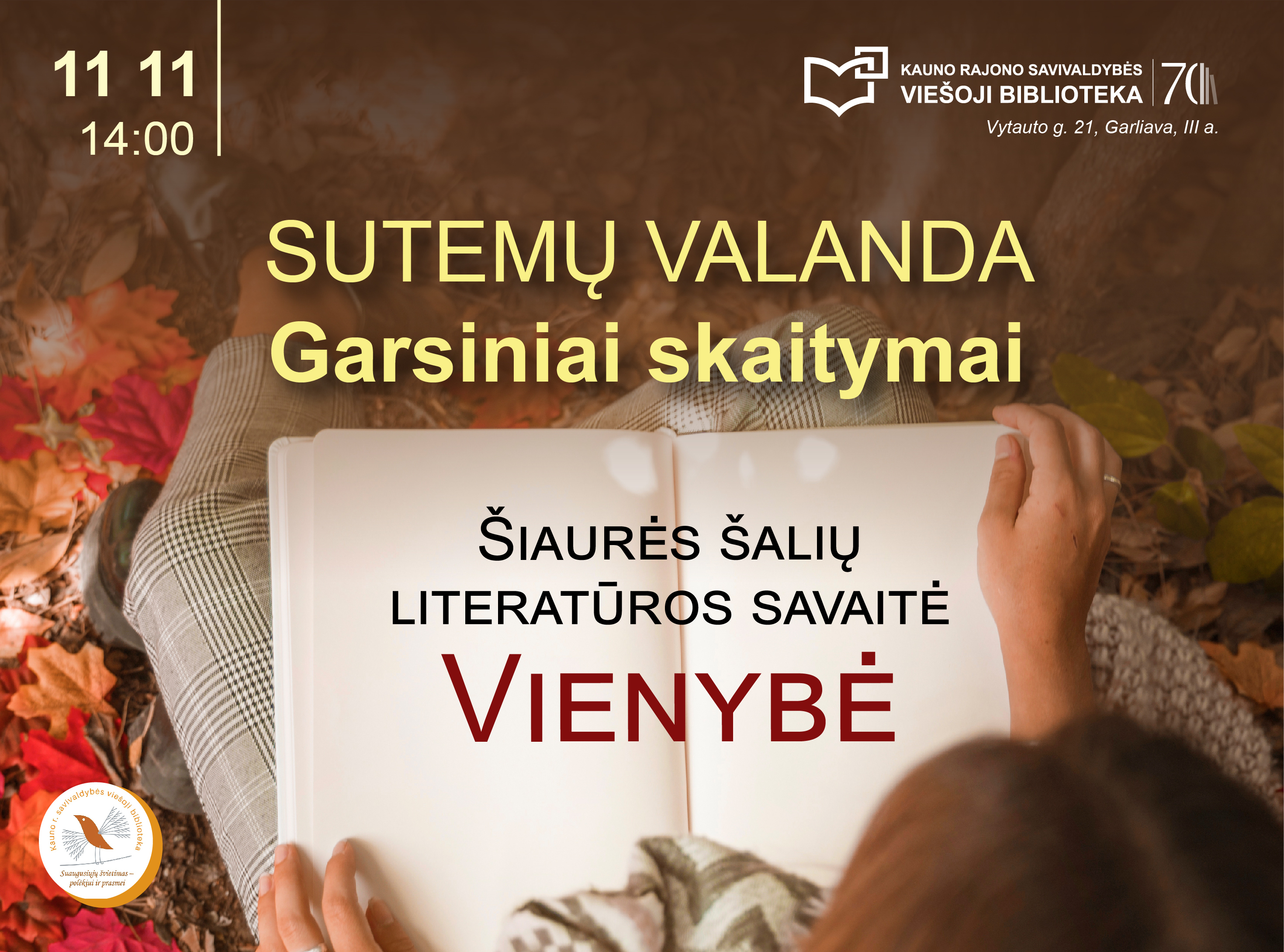 Kviečiame į gražia kasmetine tradicija mūsų bibliotekoje tapusį renginį – Šiaurės šalių literatūros savaitei skirtus garsinius skaitymus „Sutemų valanda“. Kasmet šis renginys suvienija mūsų bendruomenę prasmingam susitikimui su Šiaurės šalių literatūra ir kultūra.