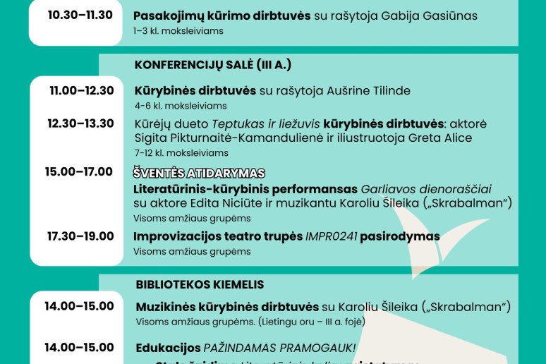 Atraskite knygų pasaulį iš naujo – per susitikimus, patirtis ir kūrybą. Visos veiklos nemokamos ir atviros žmonėms be jokių papildomų registracijų.