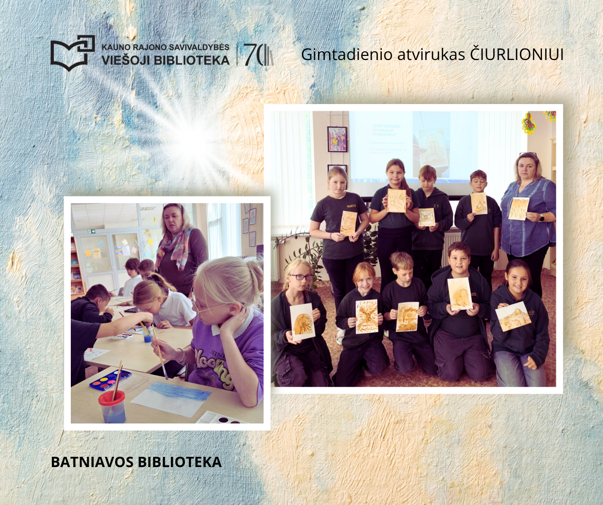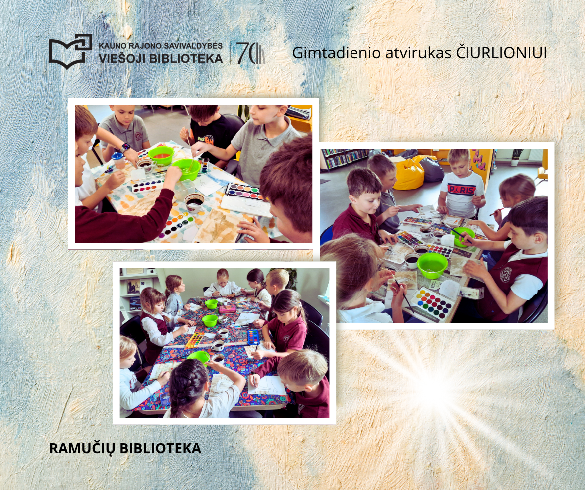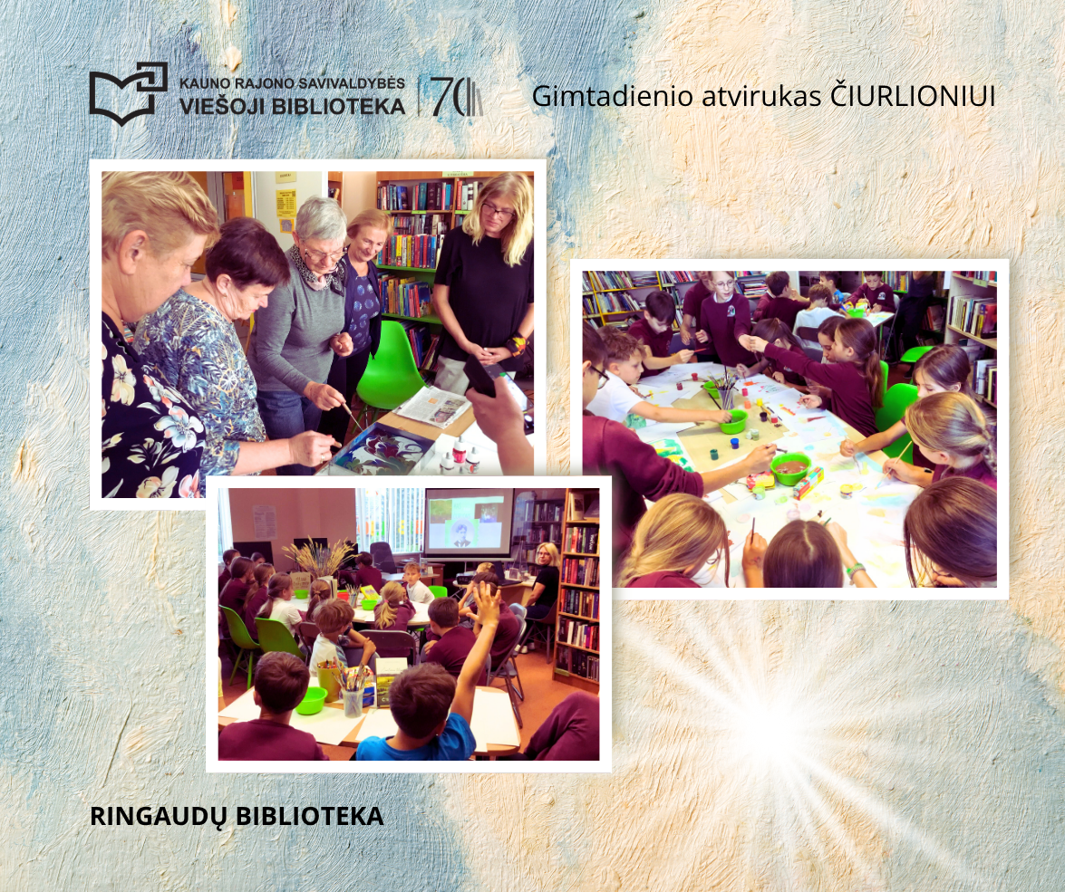 2025 m. rugsėjo 22-ąją buvo minimos Mikalojaus Konstantino Čiurlionio 150-osios gimimo metinės, tad visą rugsėjo mėnesį Kauno rajono savivaldybės viešojoje bibliotekoje ir trisdešimtyje jos padalinių Kauno rajone vyko gausybė veiklų, kurių tikslas – padėti pažinti ir aktualizuoti lietuvių kilmės genijaus kūrybą. Biblioteka su padaliniais įgyvendino akciją „Gimtadienio atvirukas Čiurlioniui“. Edukacijose bei kūrybinės dirbtuvėse, atveriančiose M. K. Čiurlionio gyvenimo ir kūrybos lobynus, dalyvavo arti 800 įvairaus amžiaus bibliotekos lankytojų. Akcijos veiklos ne tik atskleidė esminius didžiojo menininko kūrybos motyvus, bet ir skatino individualų kūrybiškumą. Dalijamės akcijos akimirkomis.