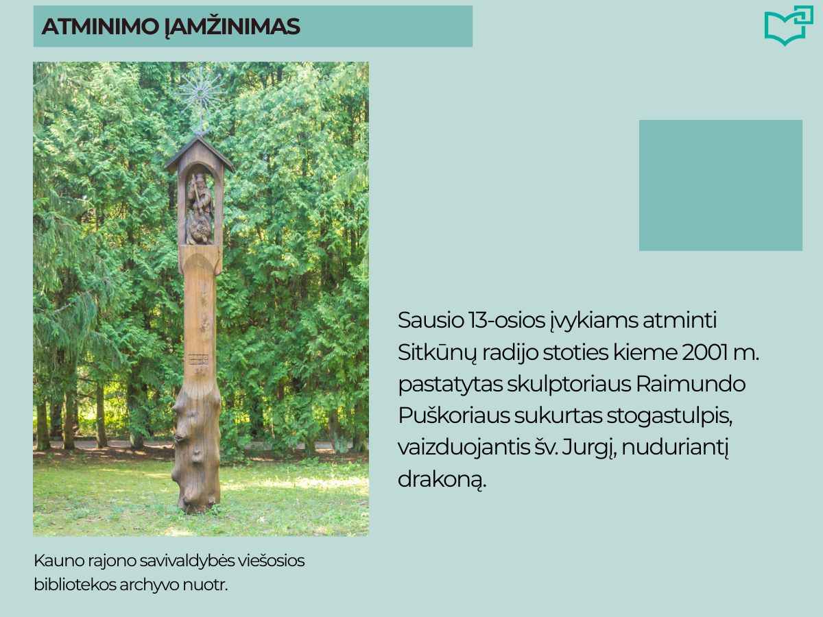 Kviečiame apsilankyti virtualioje parodoje, skirtoje 1991 m. Sausio 13-osios įvykiams Sitkūnuose atminti, lemtingosios Sausio 13-osios nakties 35-osioms metinėms ir Laisvės gynėjų dienai pažymėti. Tai svarbi proga prisiminti dramatiškus įvykius, kai Sitkūnų radijo stotis tapo laisvės balsu ir pirmoji pranešė pasauliui apie tragiškus įvykius Lietuvoje.