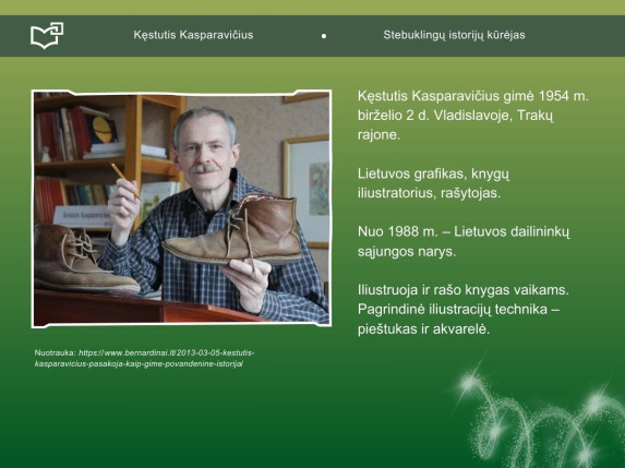 Virtuali paroda „Kęstutis Kasparavičius – stebuklingų istorijų kūrėjas“ yra skirta vaikiškų knygų autoriaus 70-ies metų sukakčiai pažymėti. Kęstutis Kasparavičius knygas vaikams ir rašo, ir iliustruoja. Šiuo metu jau yra iliustravęs apie 50 knygų vaikams. Daug jų galite rasti mūsų bibliotekoje (kreipkitės į bibliotekos Vaikų centro bibliotekininką). Kviečiame skaityti!