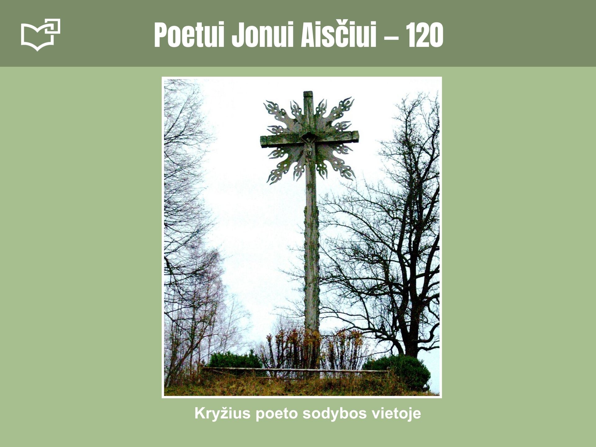 Liepos 7-ąją minėsime lietuvių literatūros klasiko Jono Aisčio 120-ųjų gimimo metinių sukaktį. Kauno rajone (Kampiškėse, netoli Rumšiškių) gimęs vienas žymiausių lietuvių lyrikų stipriai paveikė lietuvių grožinės literatūros raidą. Jo gimimo metinių proga kviečiame peržvelgti šią virtualią parodą.