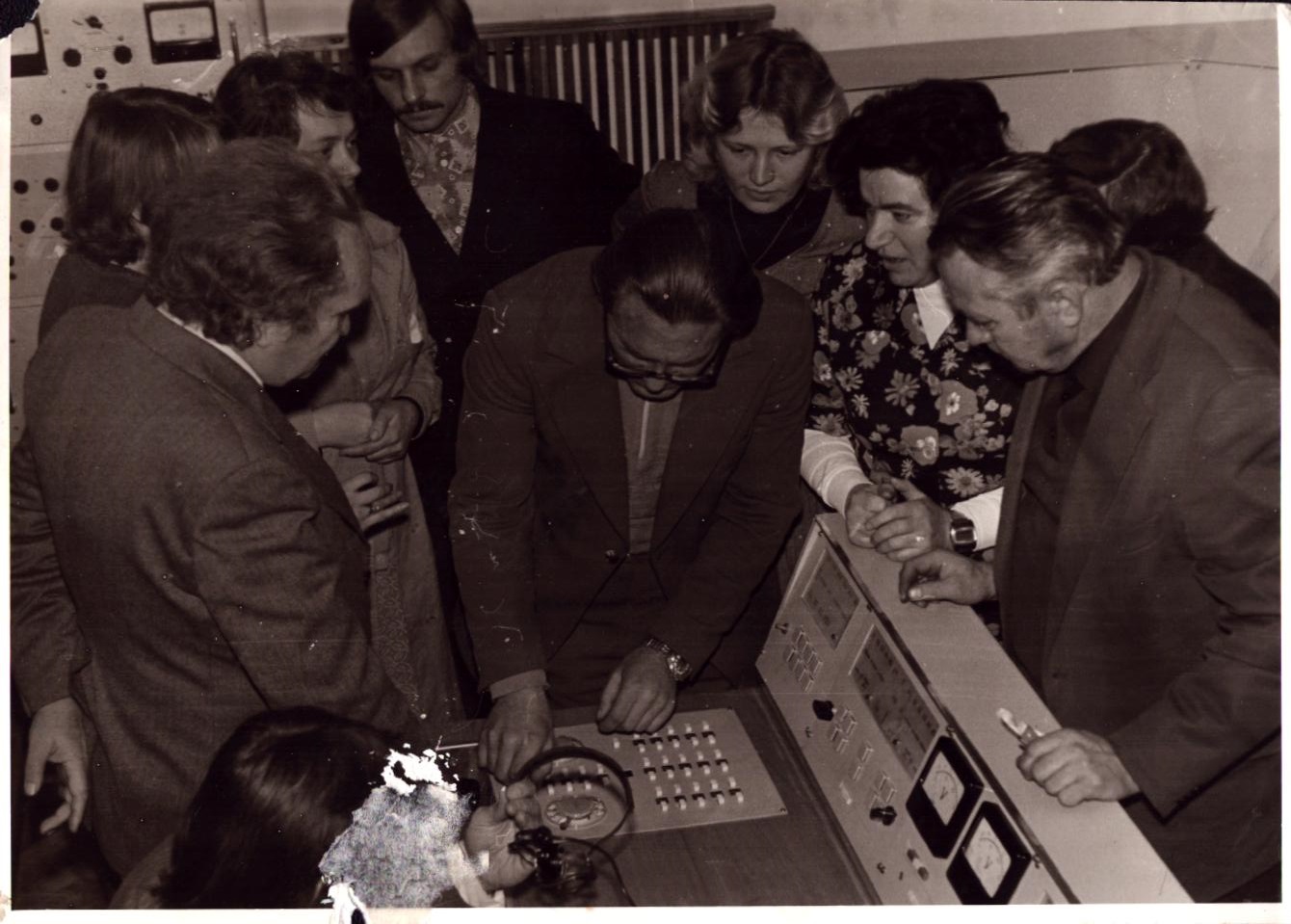 Nuotr. 3. Centralizuoto valdymo pulto atidarymas Sitkūnų radijo stotyje. Viduryje – vyr. inžinierius Petras Leškevičius, 1979 m.